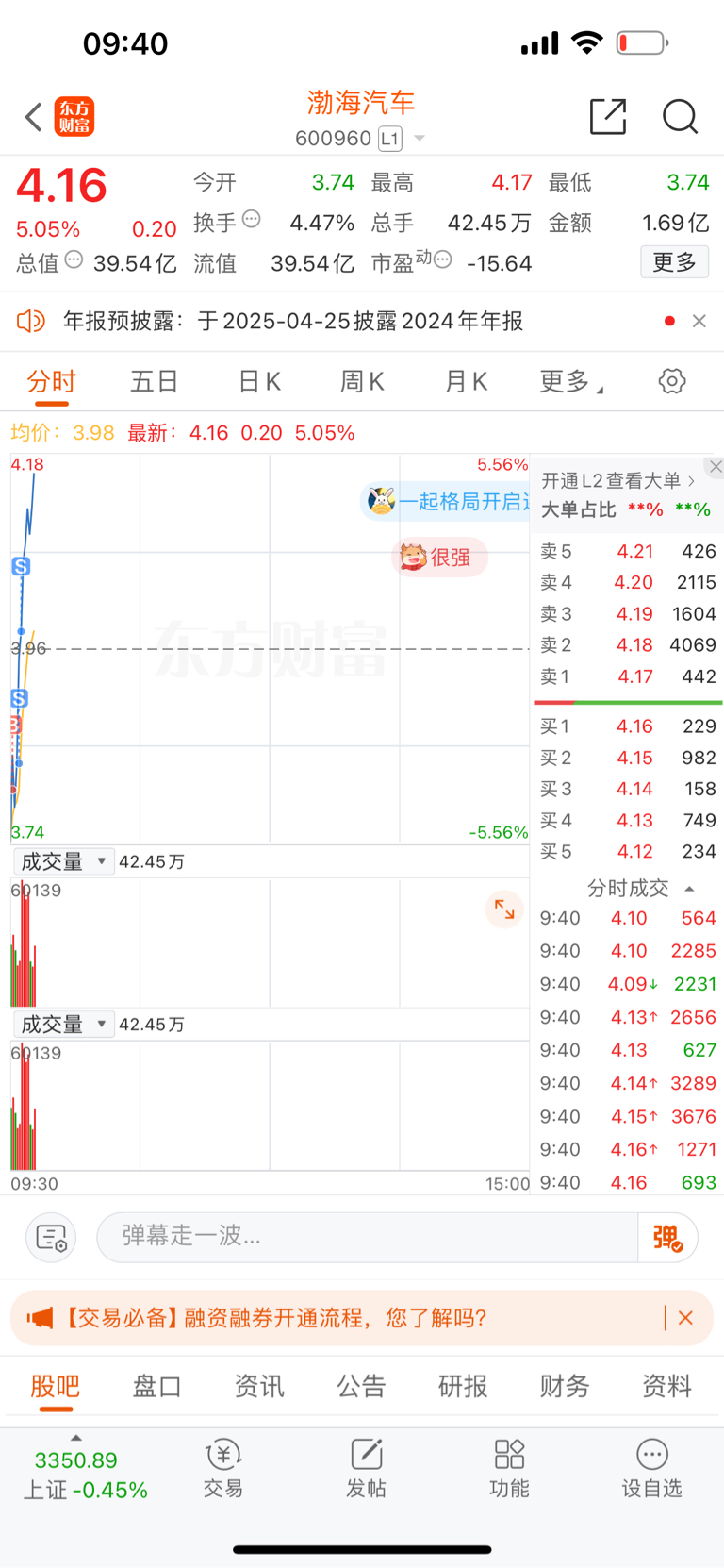 $渤海汽车(SH600960)$ 失误了