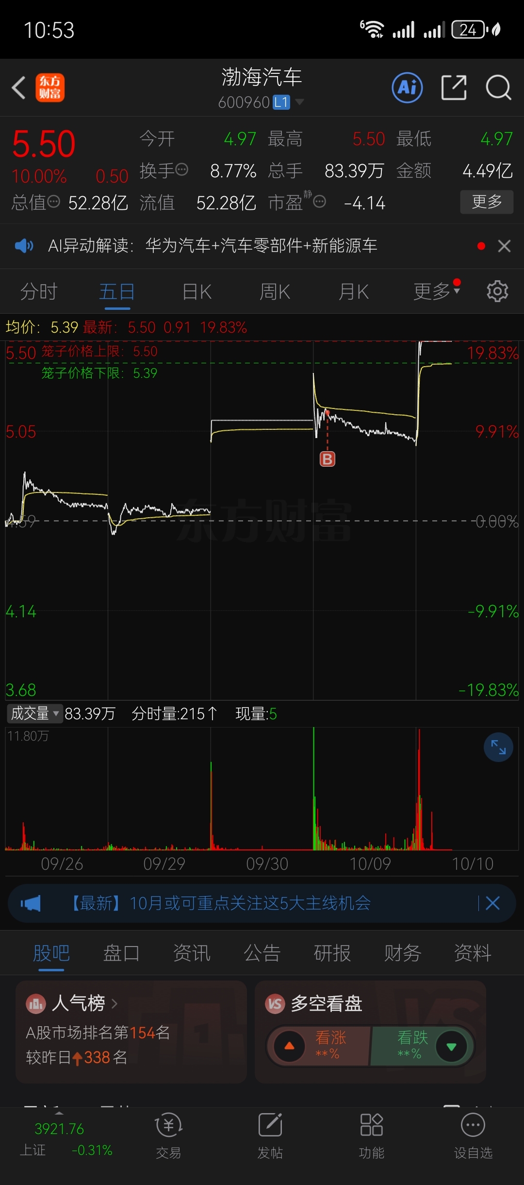 $渤海汽车(SH600960)$ 这次大概率要破高