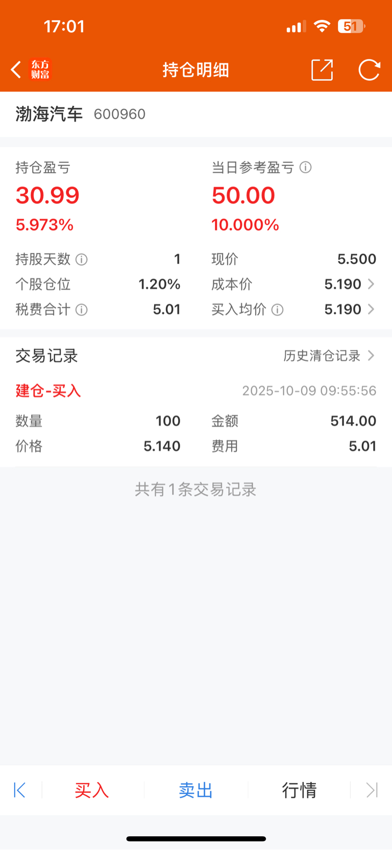 $渤海汽车(SH600960)$ 建了仓 准备加仓的 没想到今天涨停了 #炒股日记#