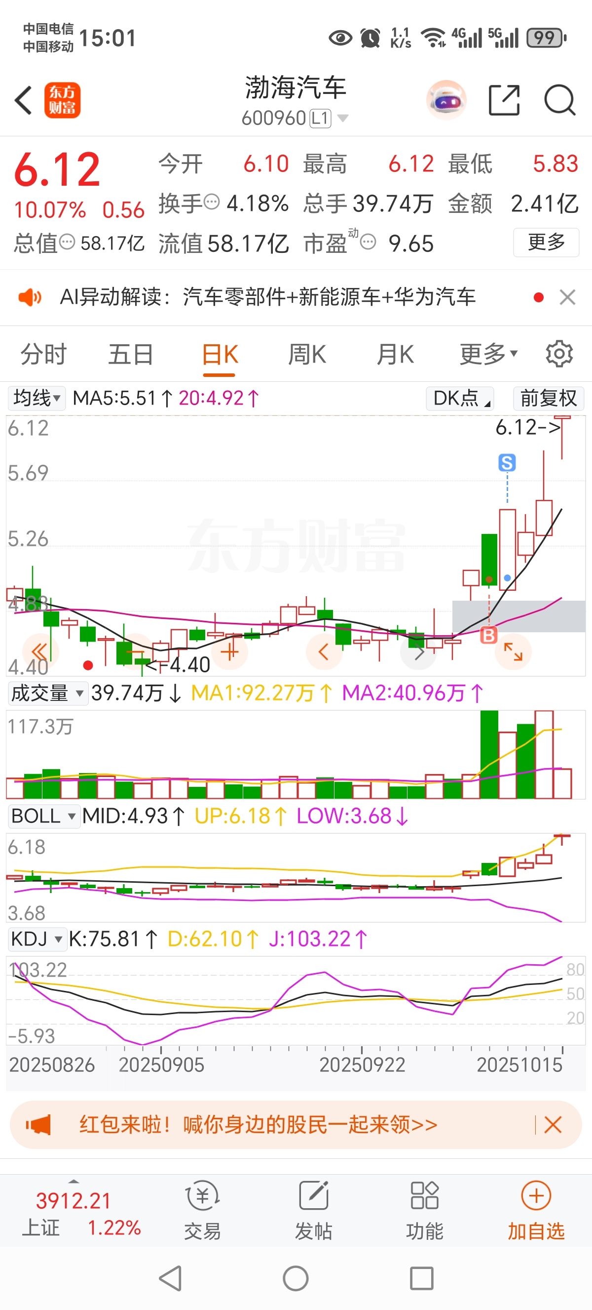 $渤海汽车(SH600960)$