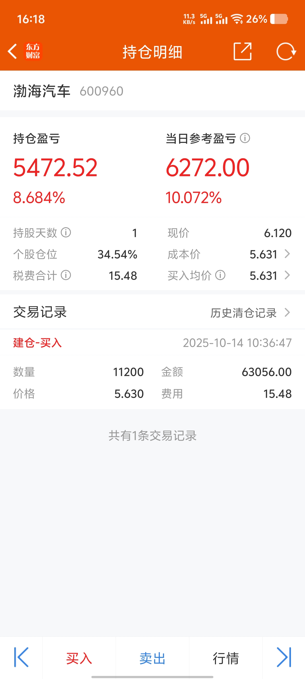 $渤海汽车(SH600960)$ 买少啦!能到12吗?