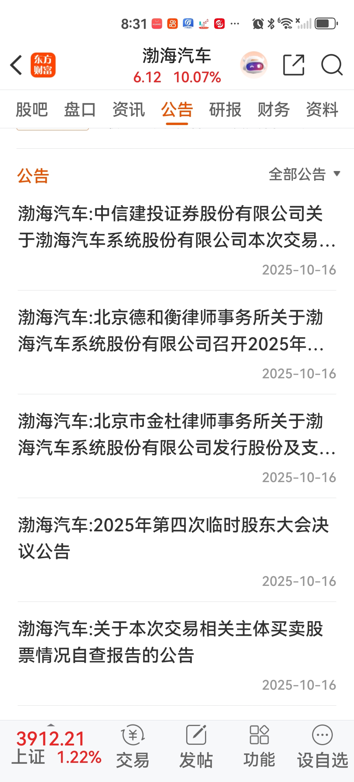 $渤海汽车(SH600960)$ 今天15号,公告怎么日期16号
