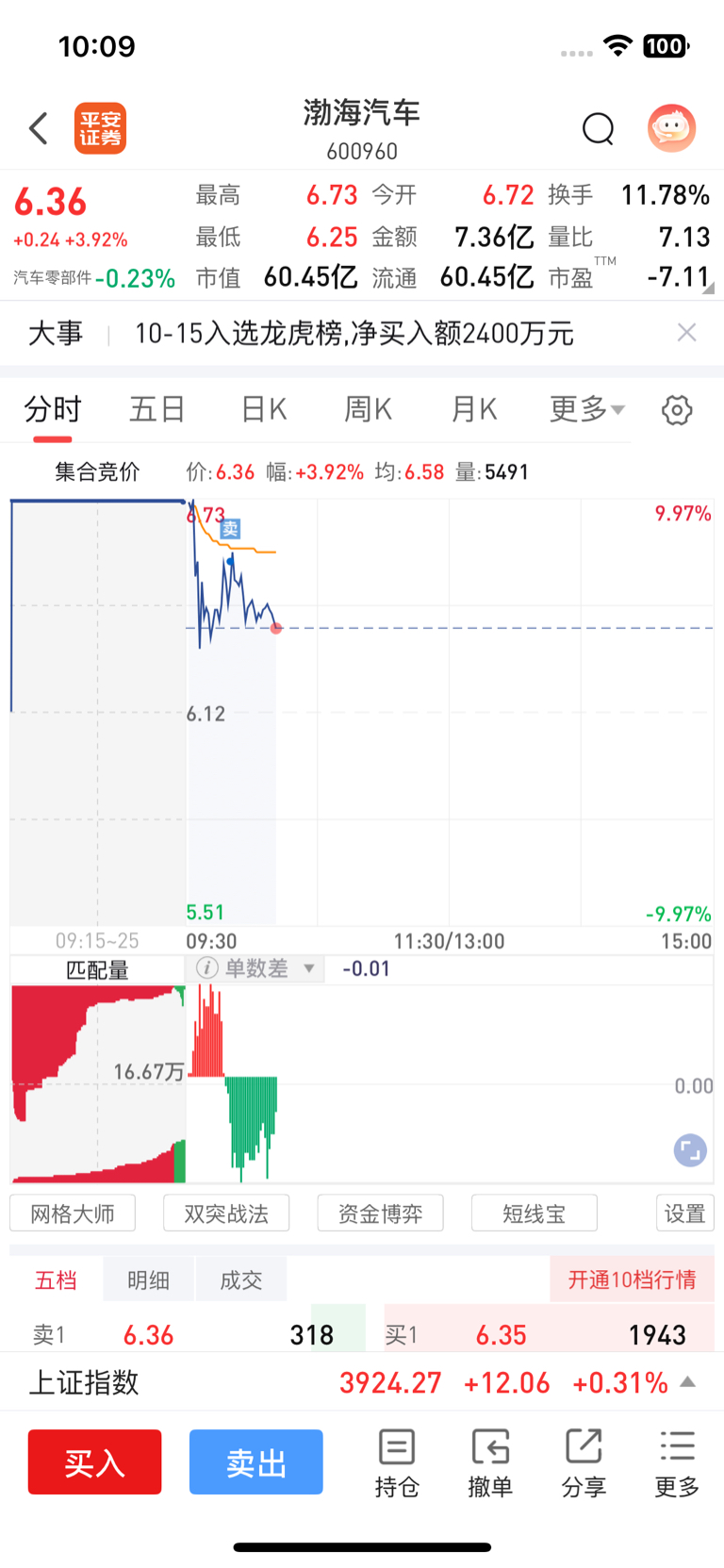 $渤海汽车(SH600960)$ 开盘涨停没出,想格局呢,算了落袋为安