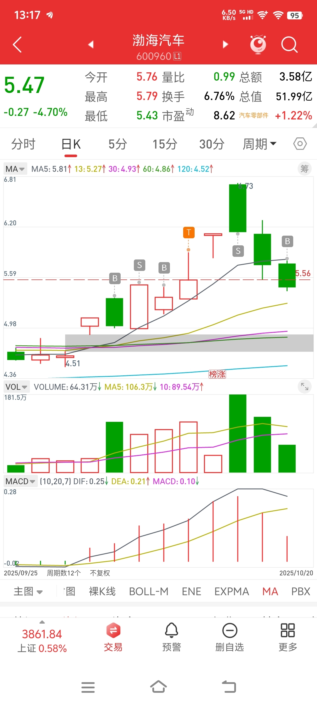 $渤海汽车(SH600960)$ 赶紧抄,明天反包