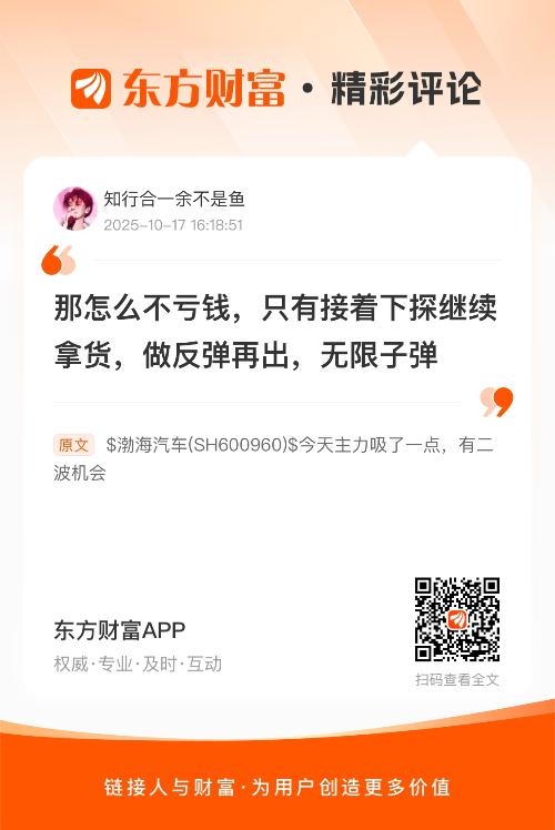 $渤海汽车(SH600960)$ 按剧本走//@知行合一余不是鱼 : 回复 山顶小叛徒 :那怎么不亏钱,只有接着下探继续拿货,做反弹再出,无限子弹