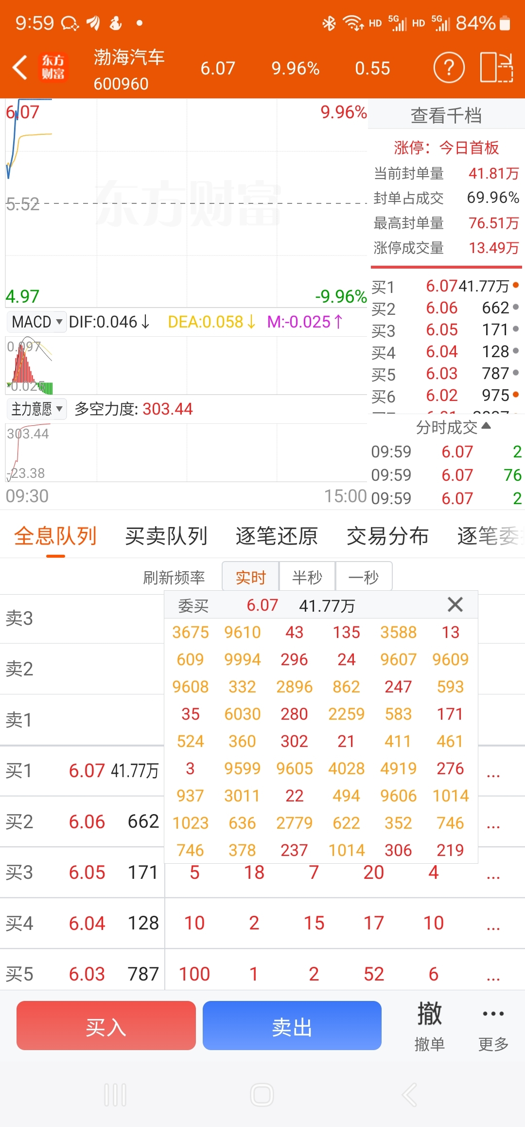 $渤海汽车(SH600960)$ 37分54秒后的,今天肯定进不来了,快撤了吧