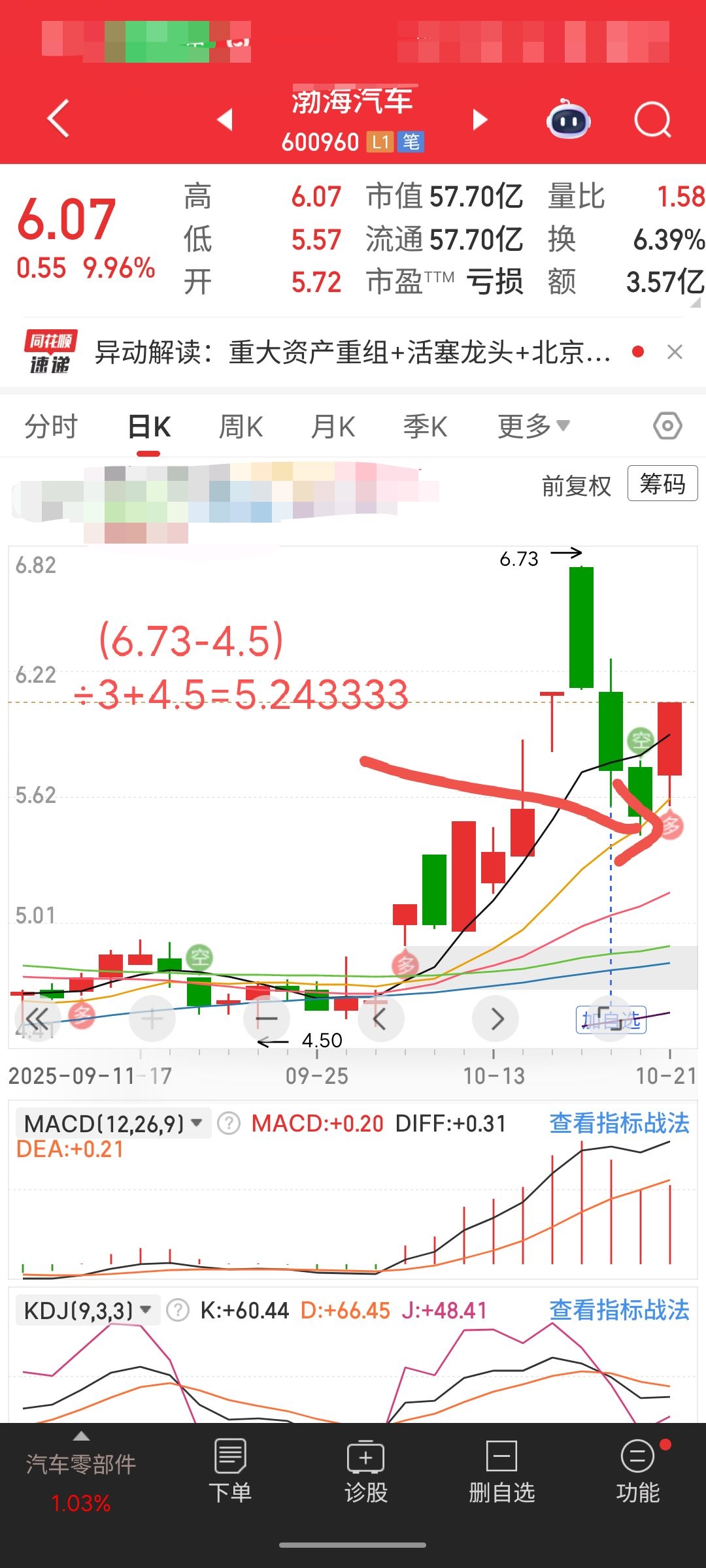 $渤海汽车(SH600960)$ 10线接住了,误差两毛