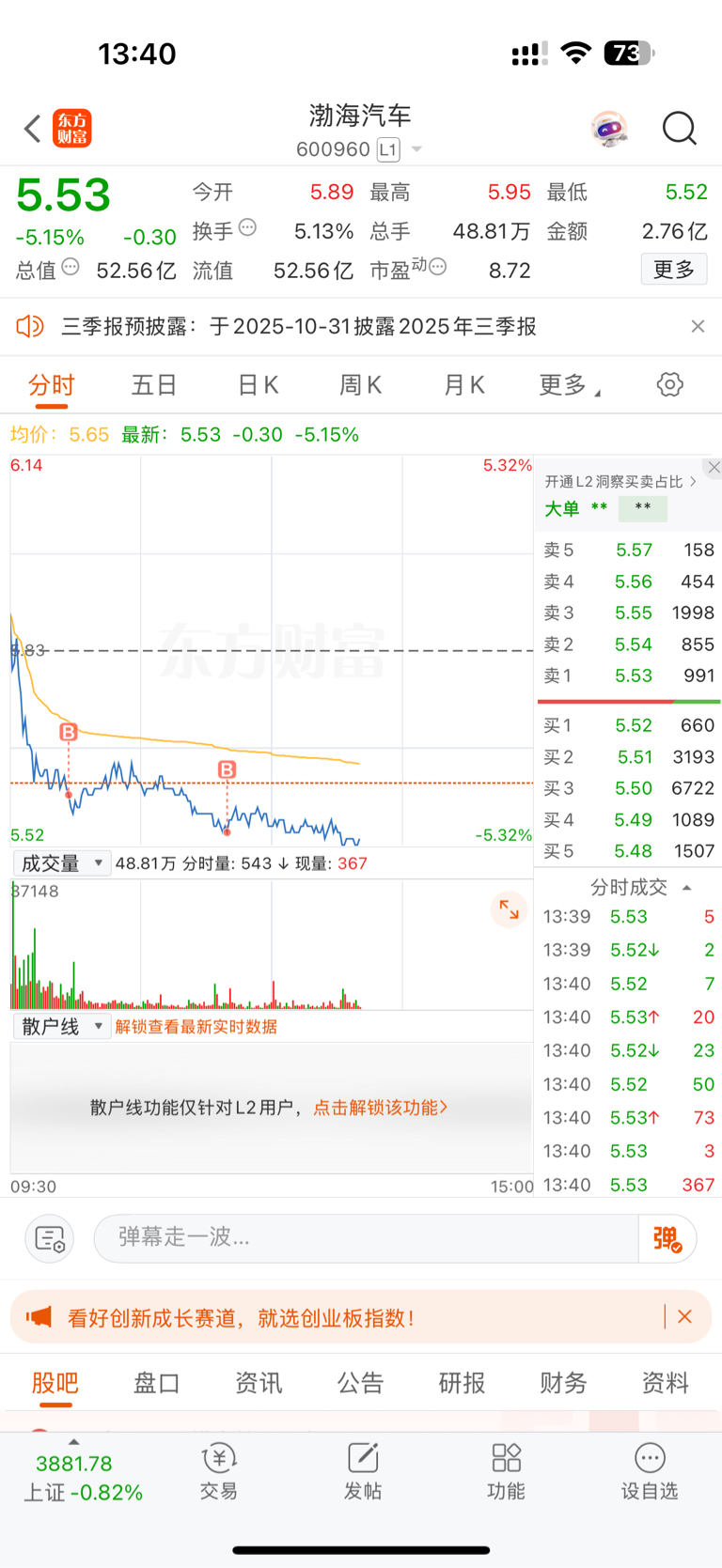 $渤海汽车(SH600960)$ 我就不行邪了,有本事跌停