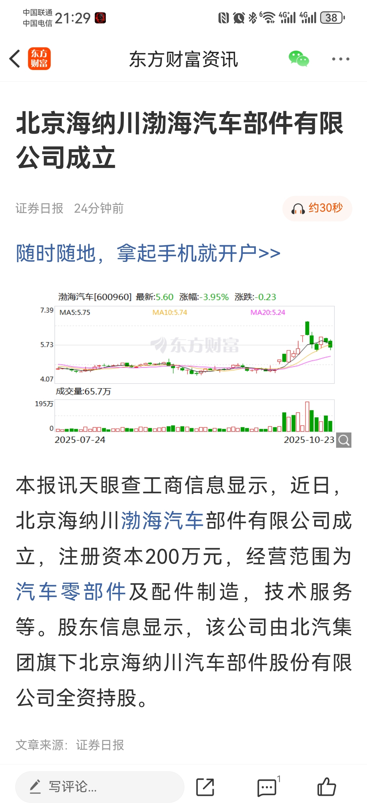 $渤海汽车(SH600960)$