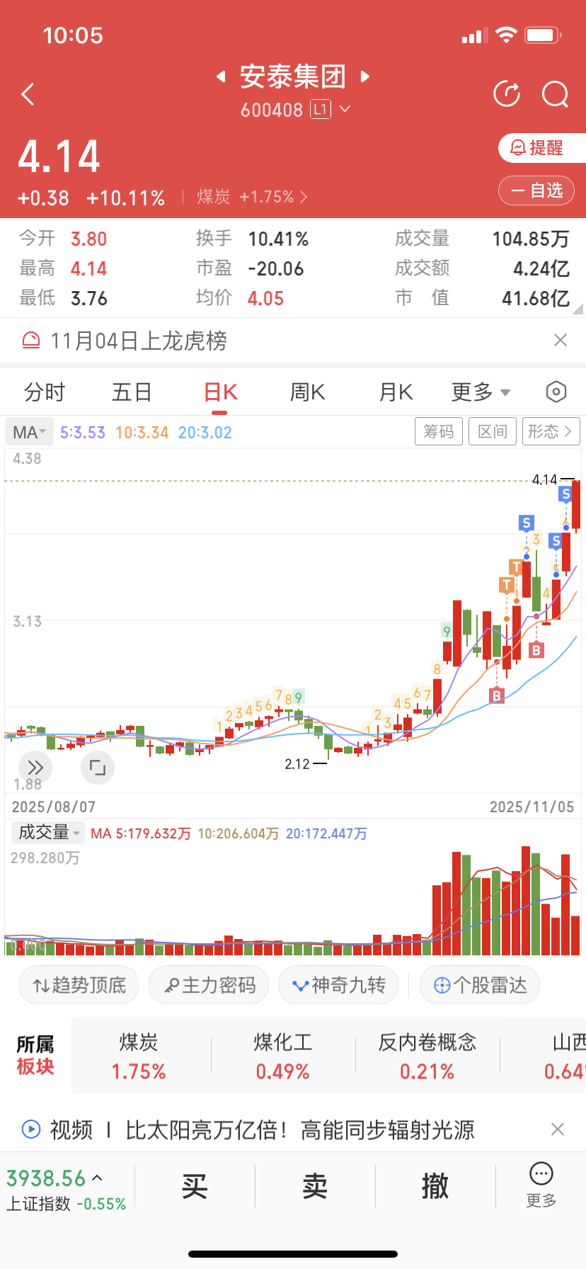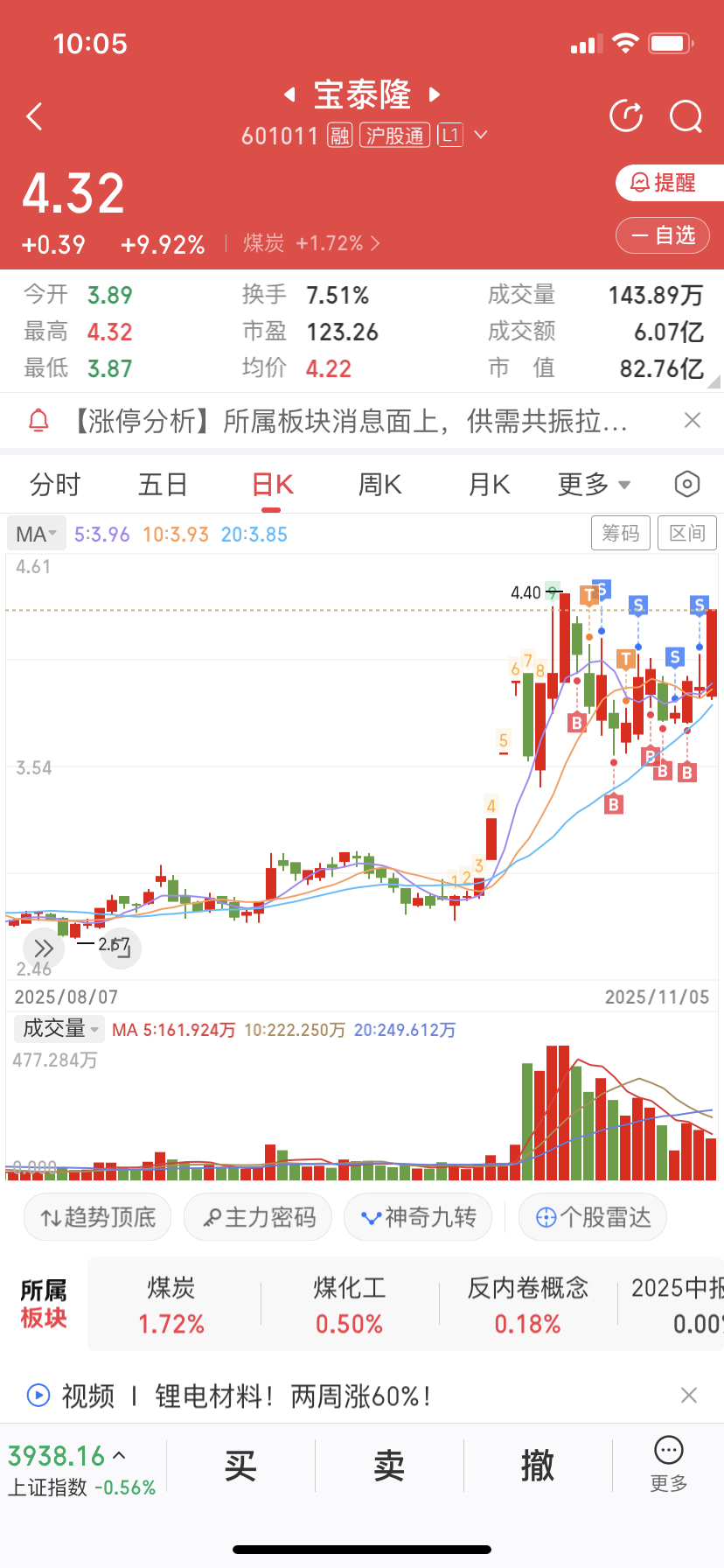 昨天减仓我的煤炭来潜伏渤海,错过我的涨停板了。