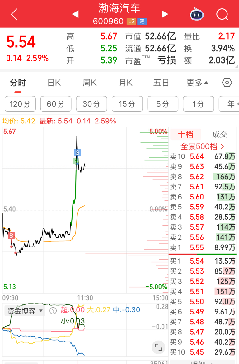 $渤海汽车(SH600960)$ 看下午,如果继续放量就是真拉升,如果没量大概率就是骗炮,早盘最低点到最高点也有6个多点的涨幅了,参考10.30日走势,大盘回落它拉升,逆子称号戴起来了