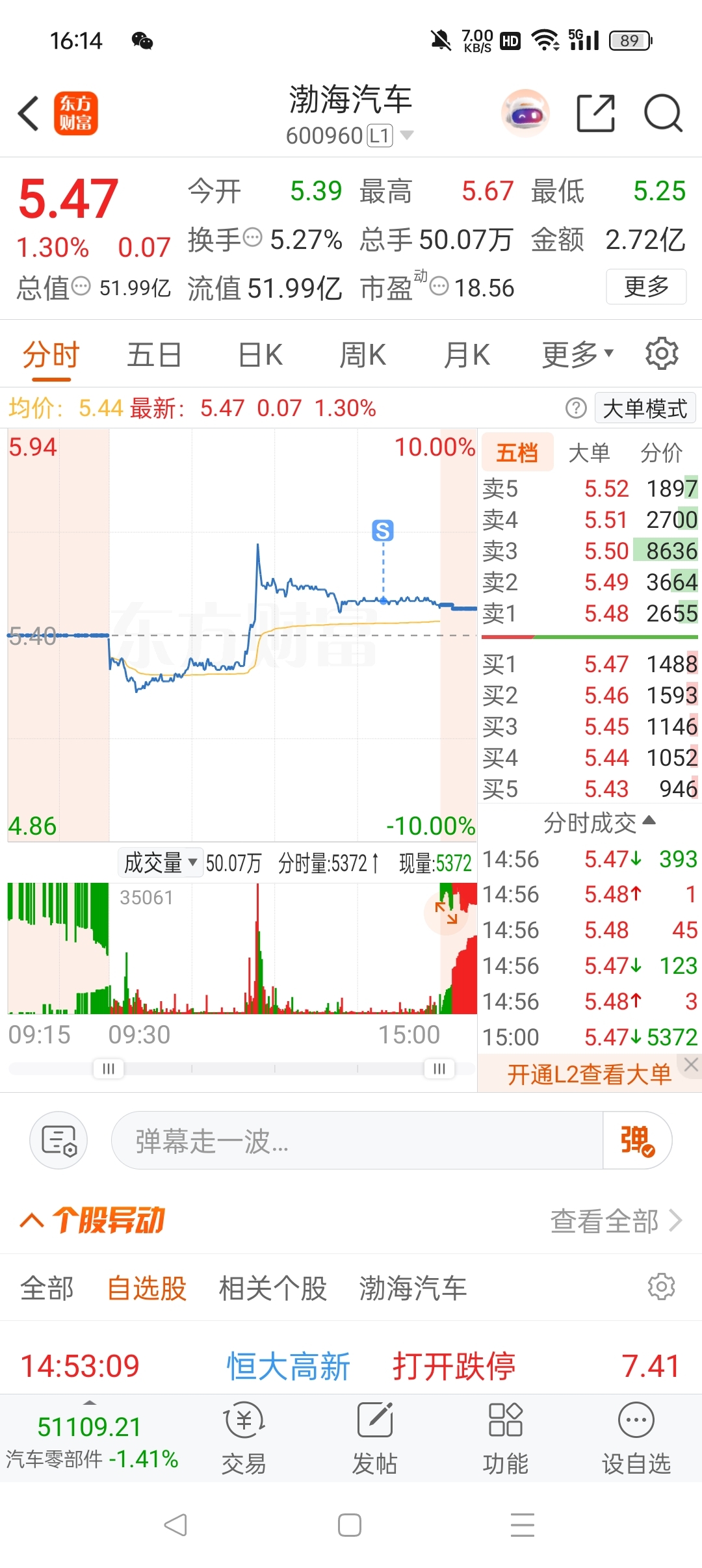 $渤海汽车(SH600960)$ 进了的兄弟别慌