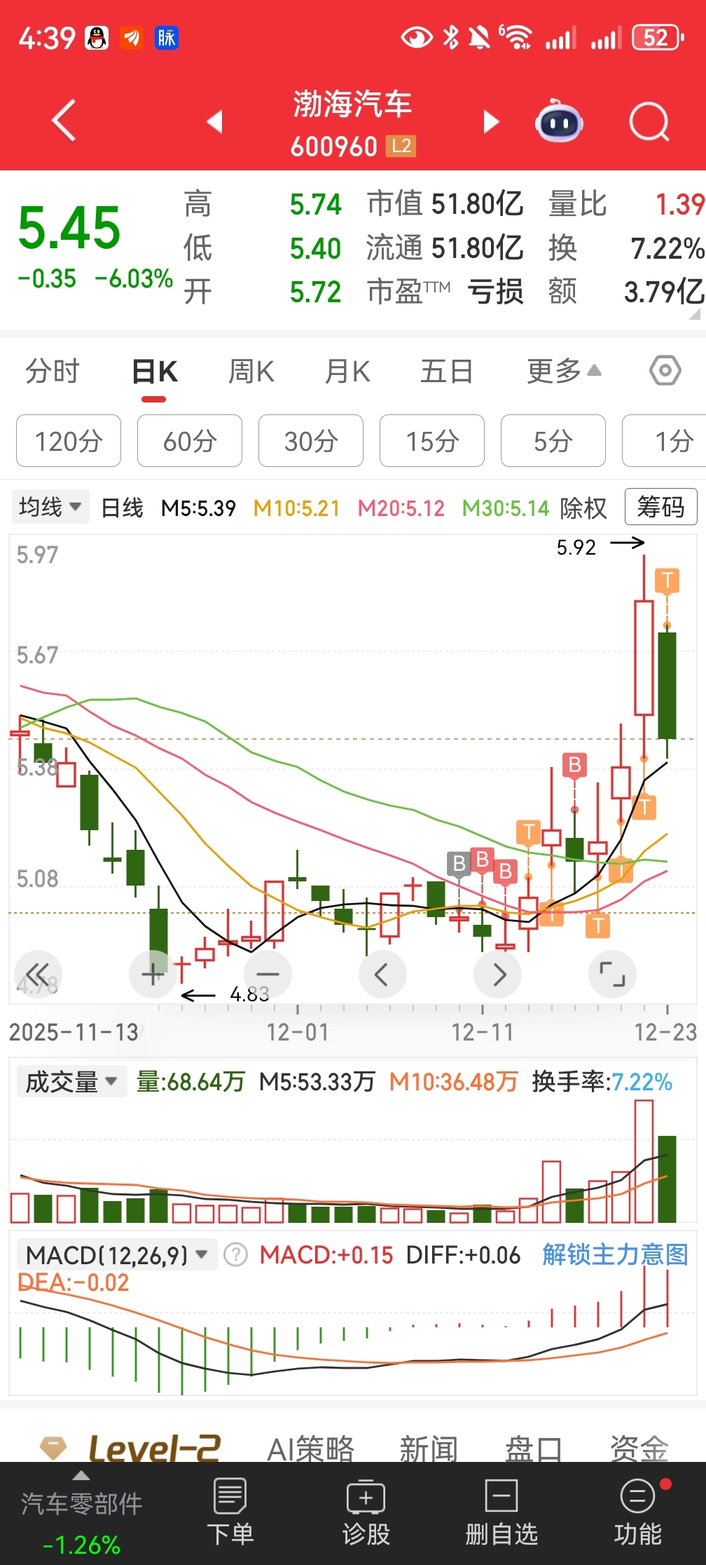 $渤海汽车(SH600960)$ 最近张10多个点回调6个点群里风向标又变了,前面的成飞集成,厦门港务跟我的老粉至少翻了2-5倍。渤海汽车我还是会坚定目标12元,再说北京国资委重组通过90%不会失败,股票本来就是博弈,我们博的是成功率,而不是下跌概率。时间认证就是一切,同样做法我建仓的底仓300万股不到12元我是不会走的。