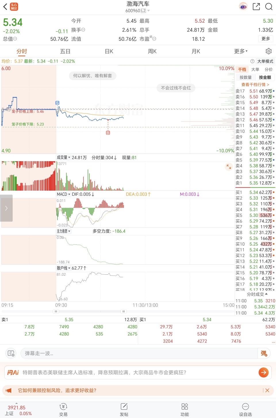 $渤海汽车(SH600960)$ 又做低了7分钱,气死主力