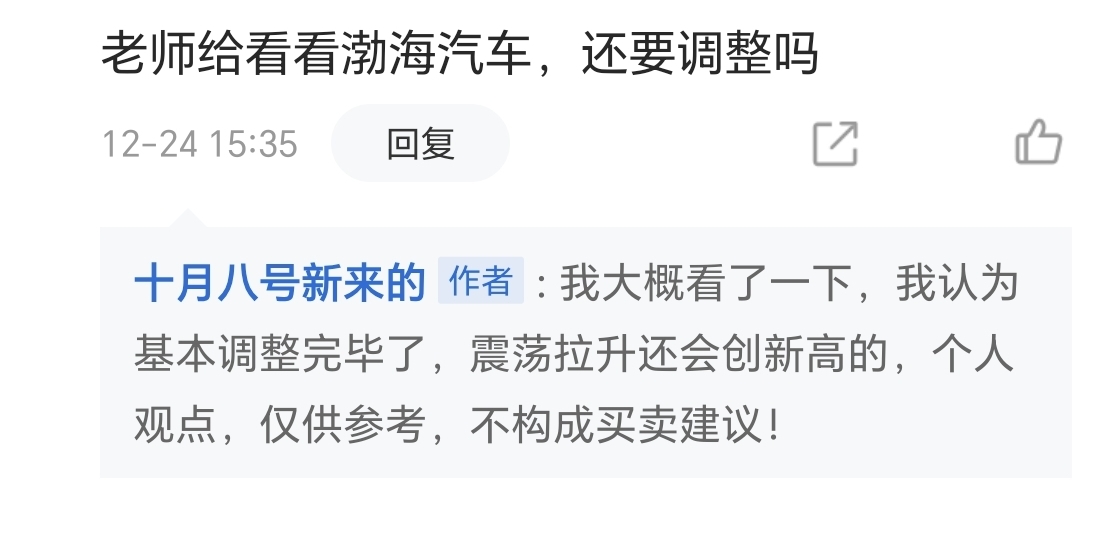 个人观点,仅供参考,不构成买卖建议!渤海汽车昨天有朋友问我调整结束了吗?我的回答