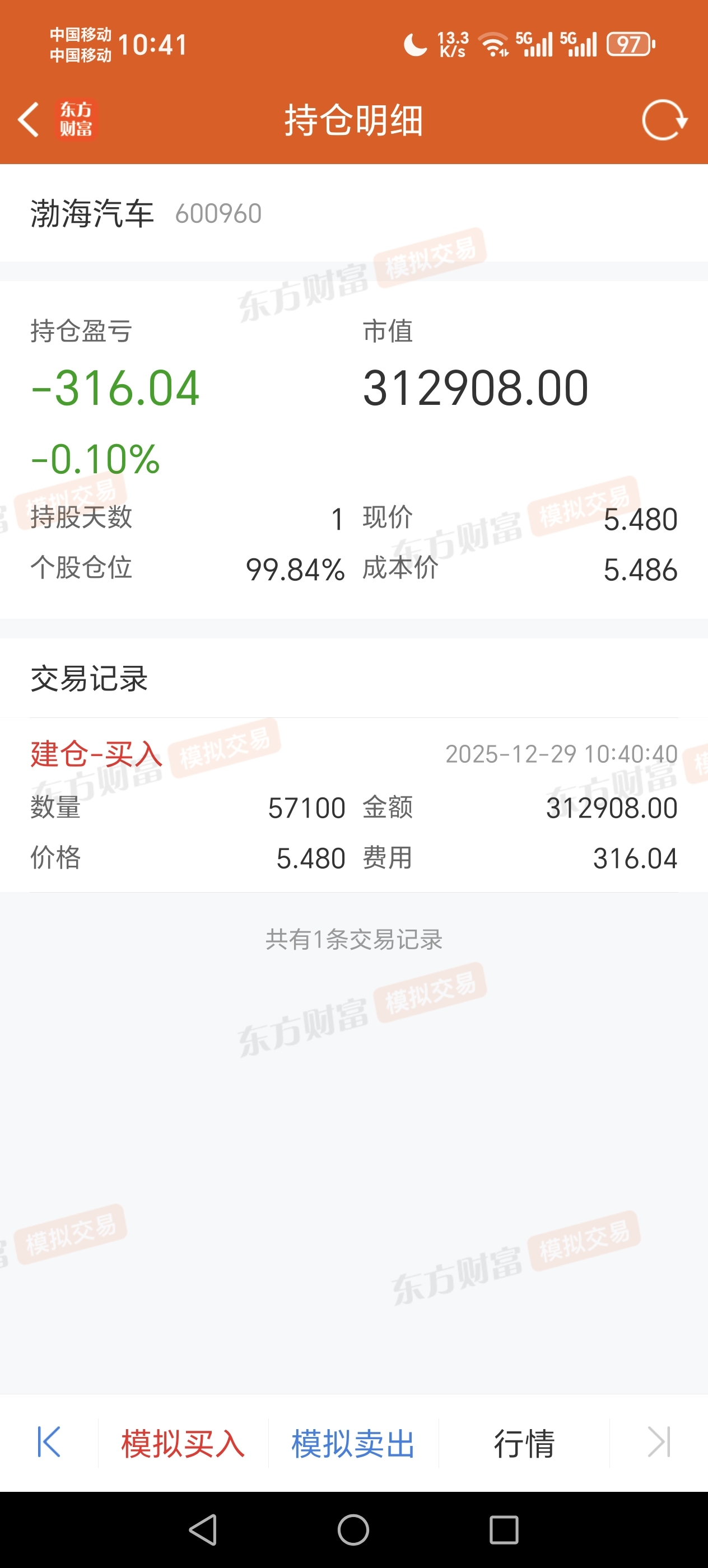 $渤海汽车(SH600960)$ 啥也别说,买了