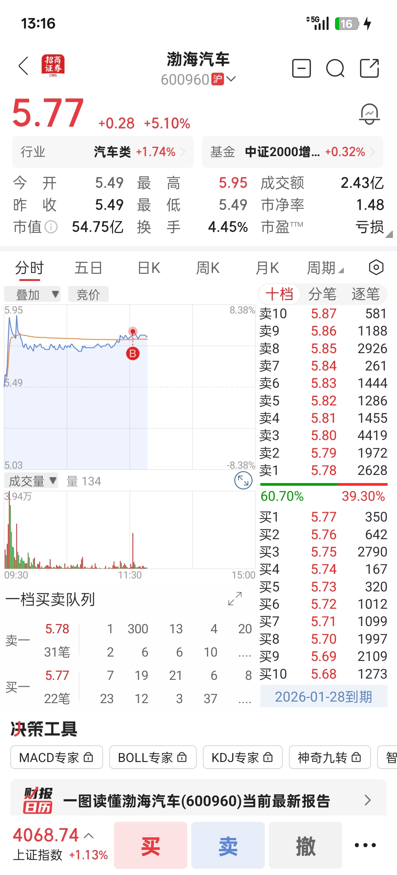 $渤海汽车(SH600960)$ 我真是韭菜盒子,又追高了