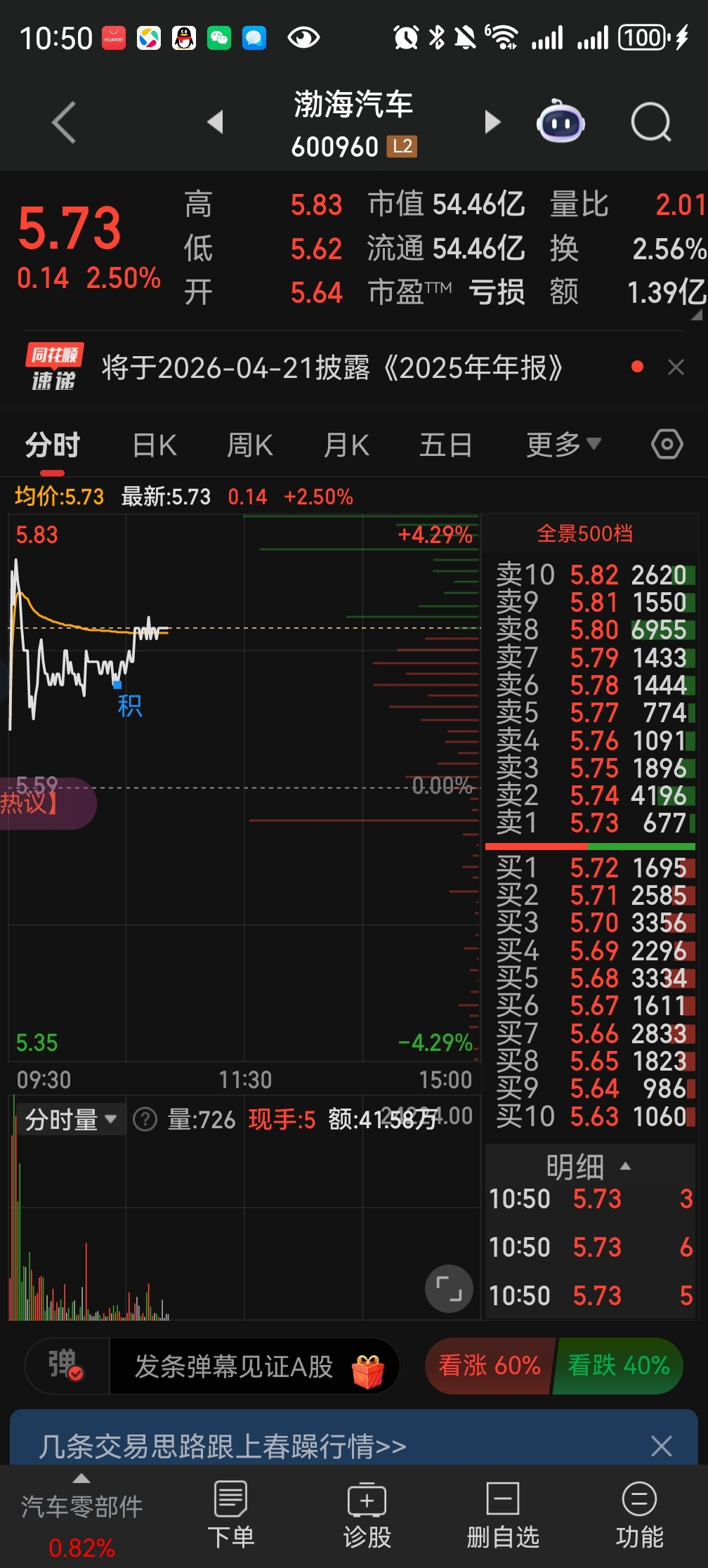 $渤海汽车(SH600960)$ 今日如突破5.95后市到很快到12元