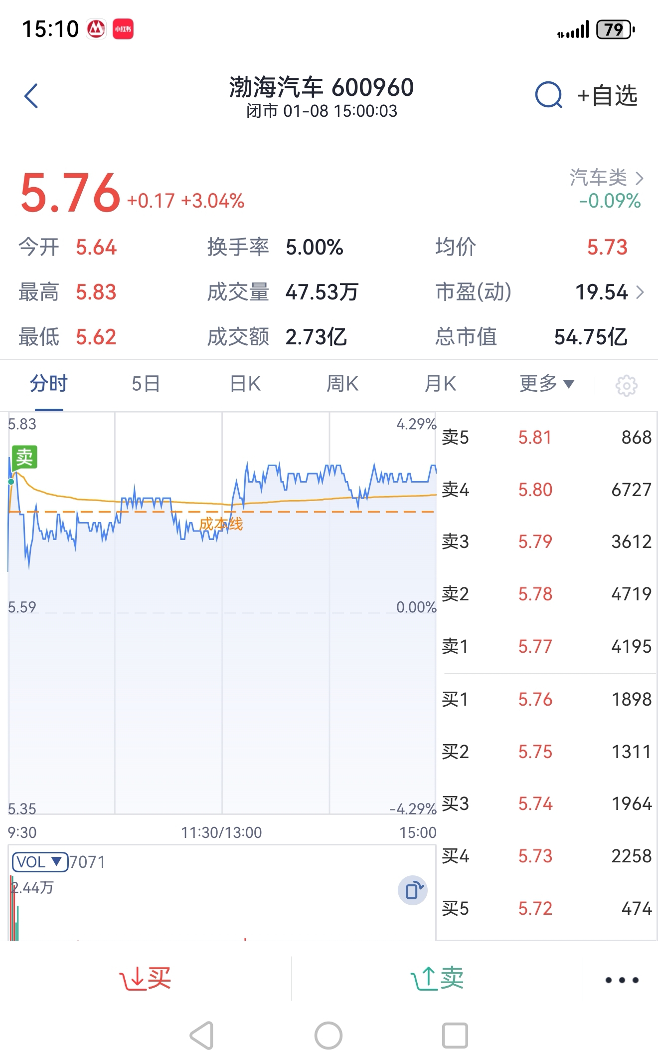 $渤海汽车(SH600960)$ 我的目标就是解套就跑