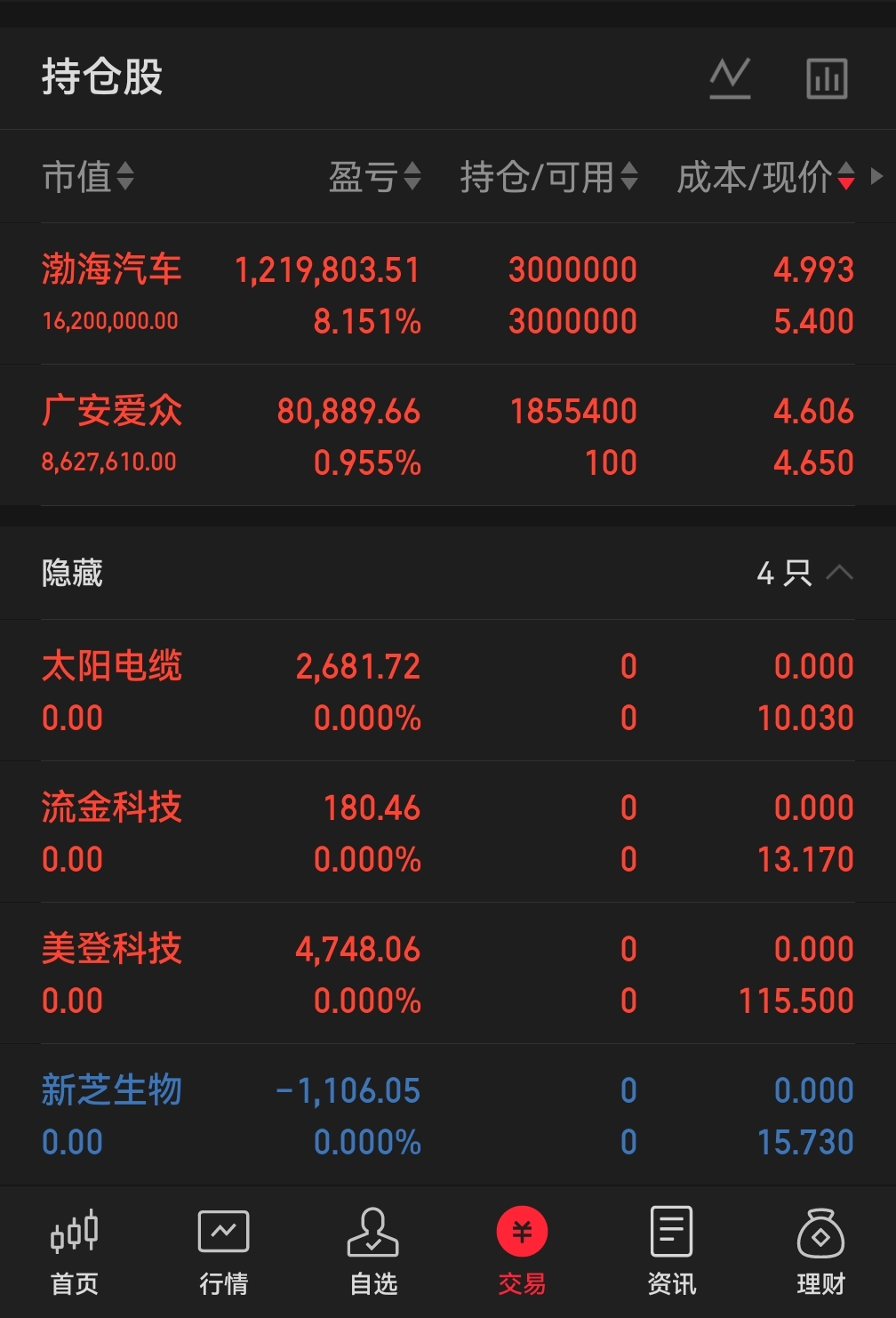$渤海汽车(SH600960)$ 渤海减仓一部分底仓没动,今天建仓180万股广安,没必要给一群sz拉伸护盘