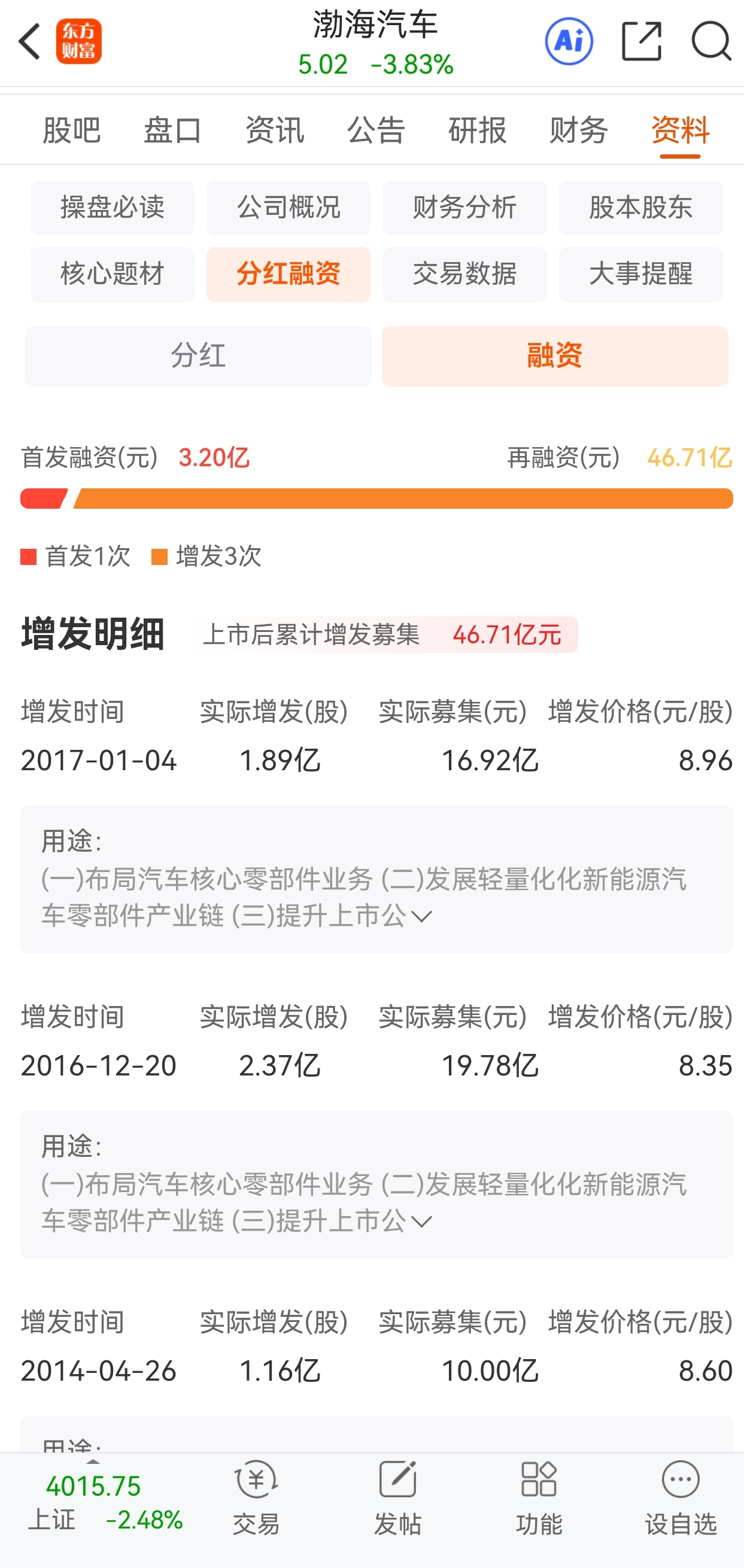 $渤海汽车(SH600960)$ 这种公司,怎么还有脸融资并购重组?除了祸害投资者,还会什么?哪个投资者买了这个票,拿10年,真的要吐血了!