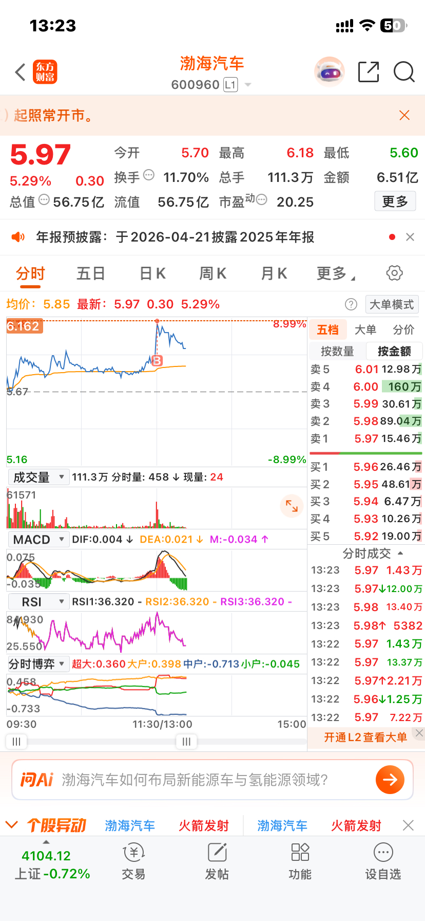 $渤海汽车(SH600960)$