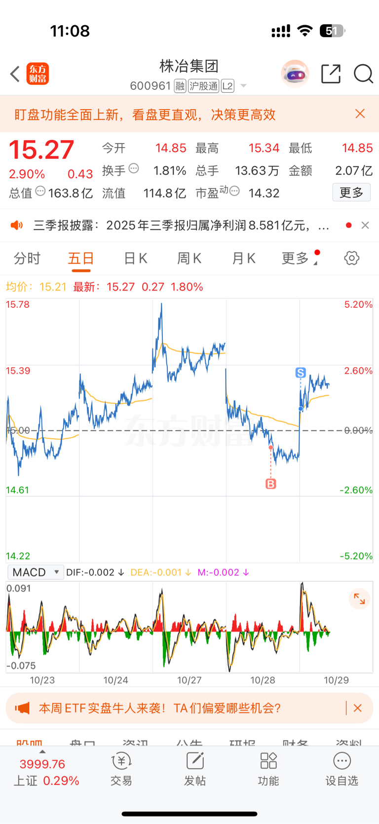 $株冶集团(SH600961)$ 两个点够了
