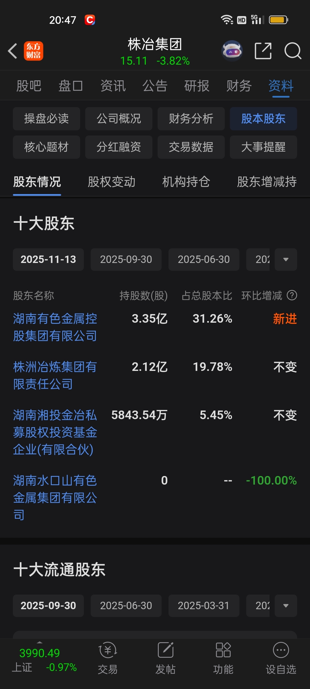 $株冶集团(SH600961)$ 十大股东就这几家了??