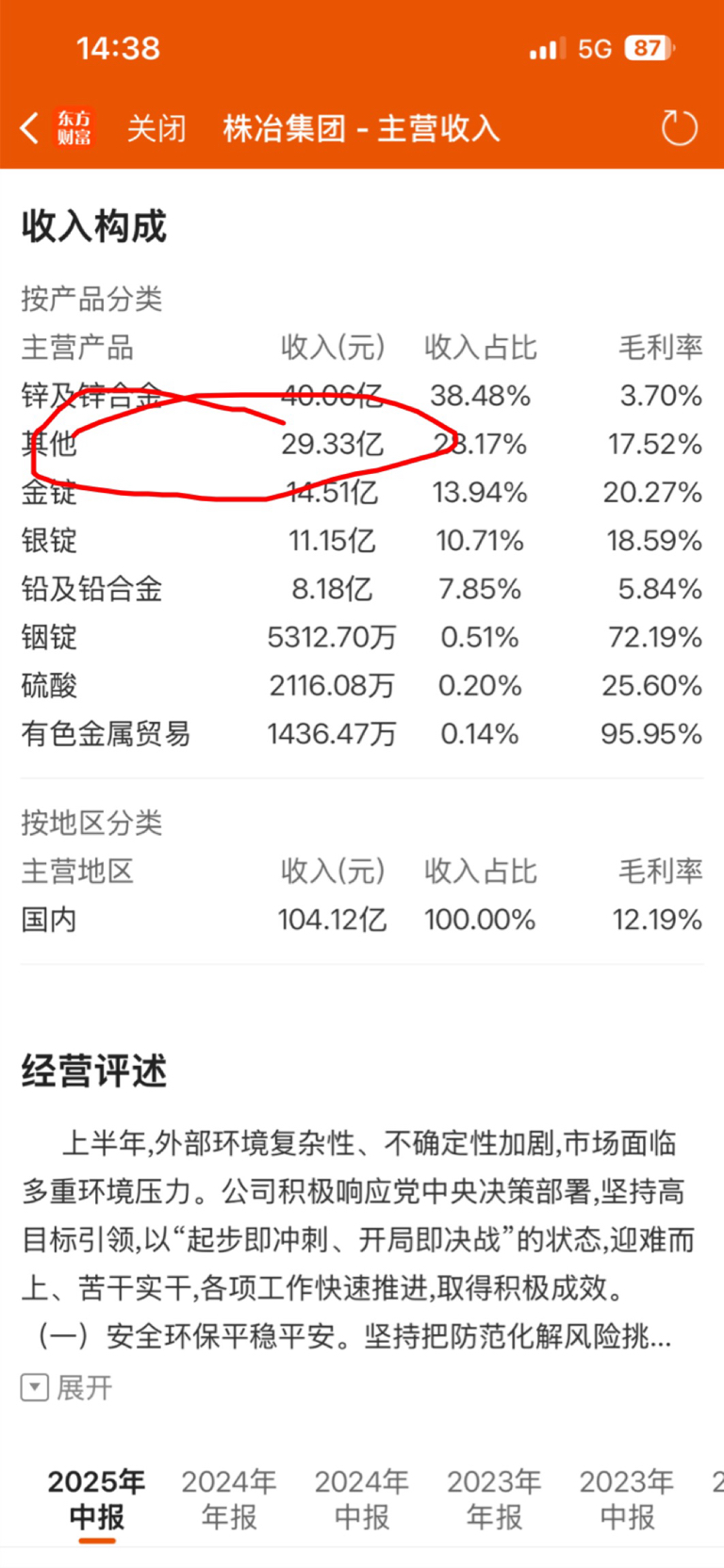 有意思的是去年全年其他业务才6.69亿,今年中报就有29.33亿,是挖到啥宝了吗