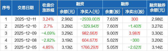 株冶集团:融资净偿还2939万元,融资余额2.96亿元(12-11)