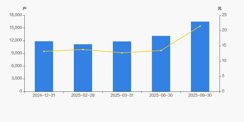 自2025年2月28日以来,公司股东户数连续3期上涨,截至目前增幅为47.88%。2025年2月28日至2025年9月30日区间股价上涨55.81%。