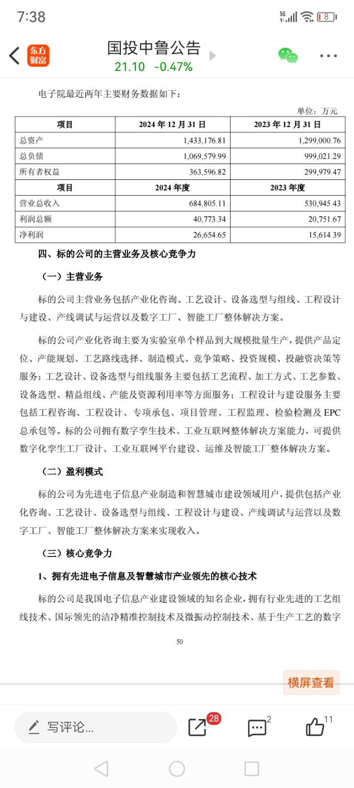 $国投中鲁(SH600962)$ 电子院总资产143亿元注入上市公司