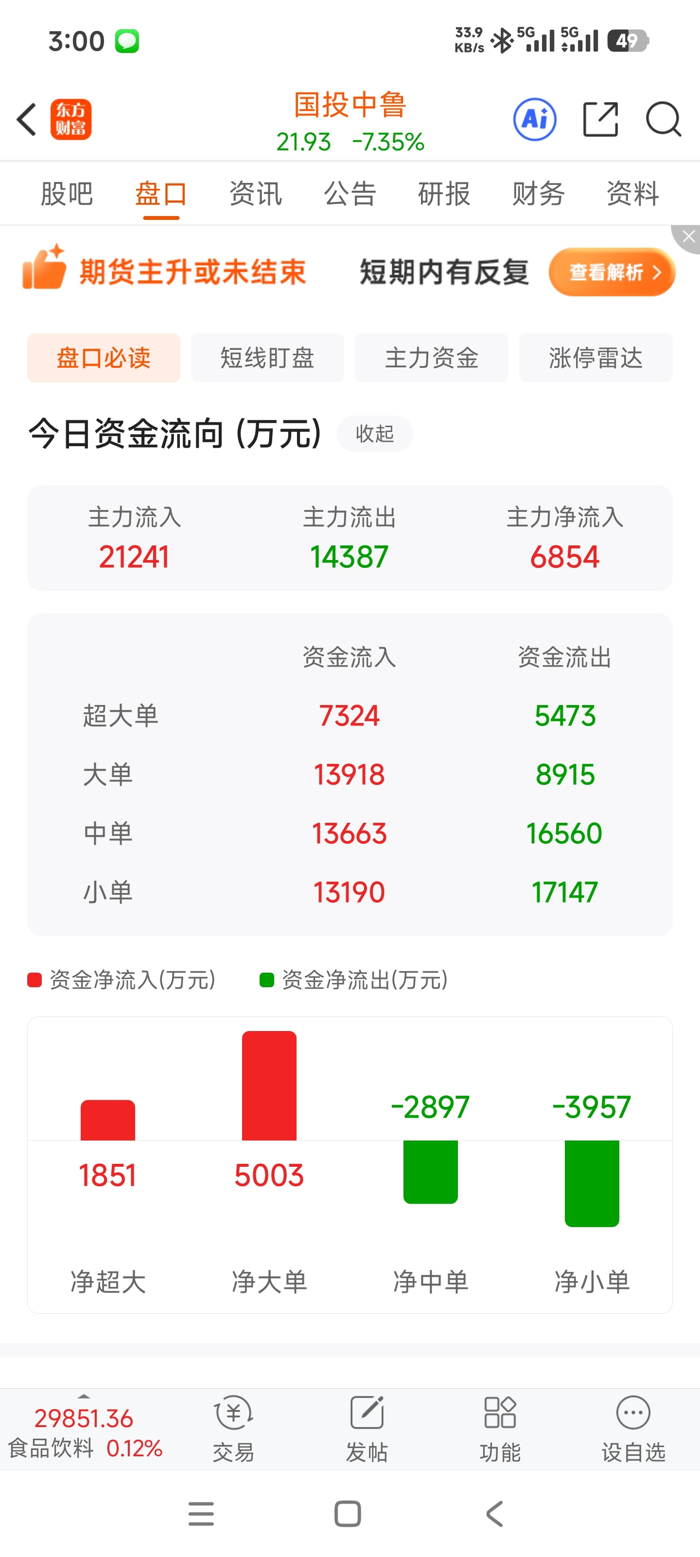 $国投中鲁(SH600962)$ 跌了一天反而流入6800万,这是在打压地板吸筹吗