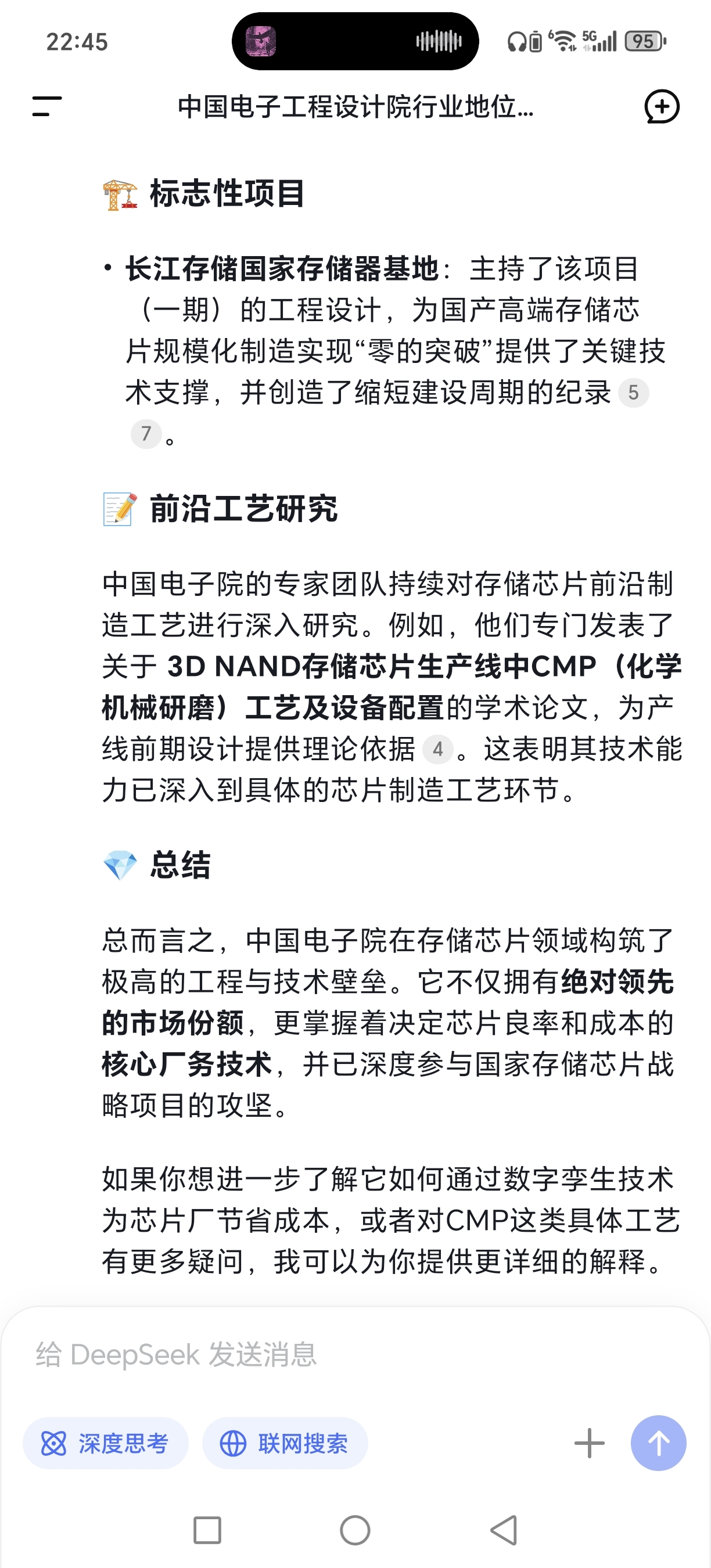 $国投中鲁(SH600962)$ 看了deepseek的信息检索,好可怕,好强大的中国电子院!给我一种,会当凌绝顶,一览众山小的感觉,你看那些蹭概念,炒到天上的股,再看看这个真实力的电子院,即便国投中鲁股价提前反应,想象空间还是非常大,电子院如果成功注入国投中鲁,股价迟早会一飞冲天,现在看看这个价位放长线。真心不高,前提是你得能拿住!个人观点,不做投资建议。