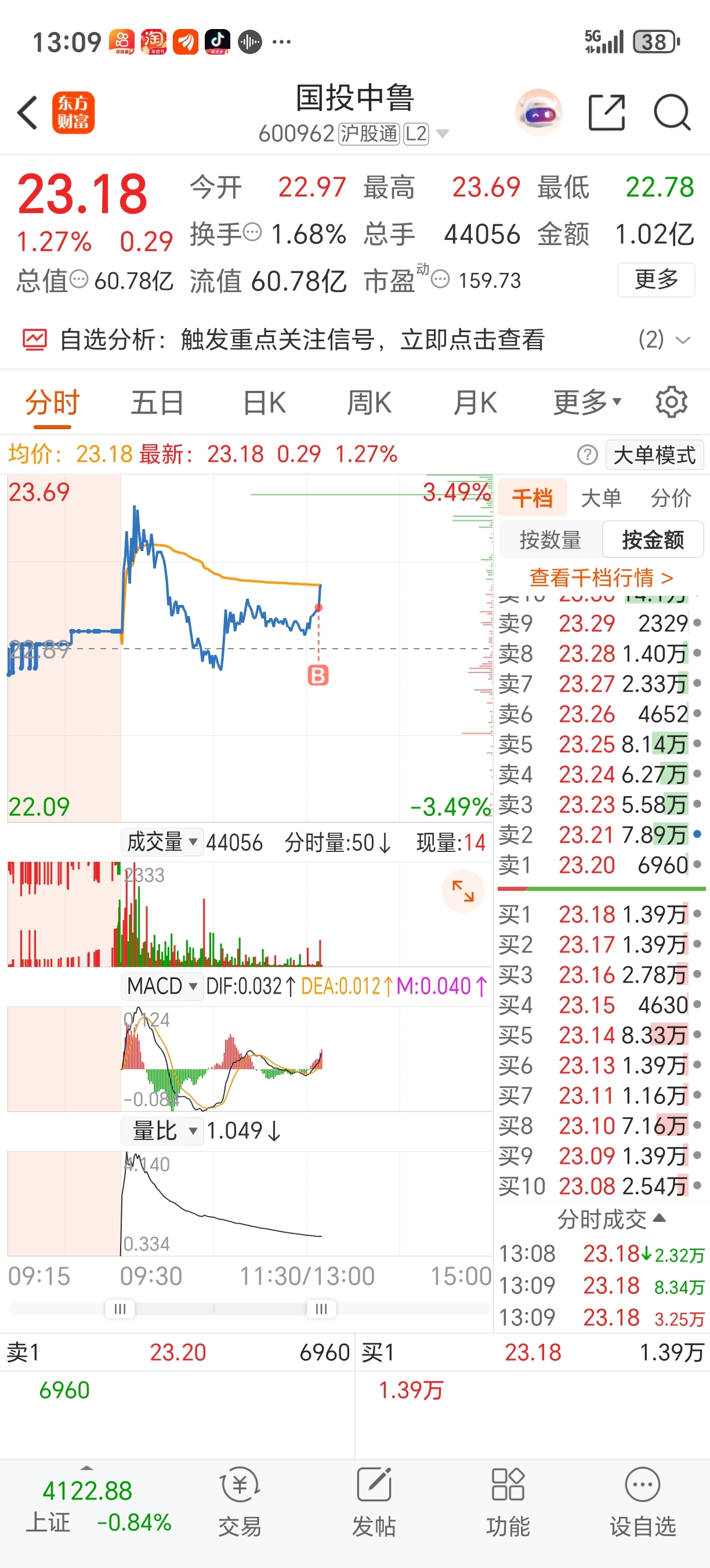 $国投中鲁(SH600962)$ 我尽力了