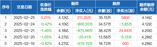 岳阳林纸:融资净买入211.26万元,融资余额4.12亿元(02-25)