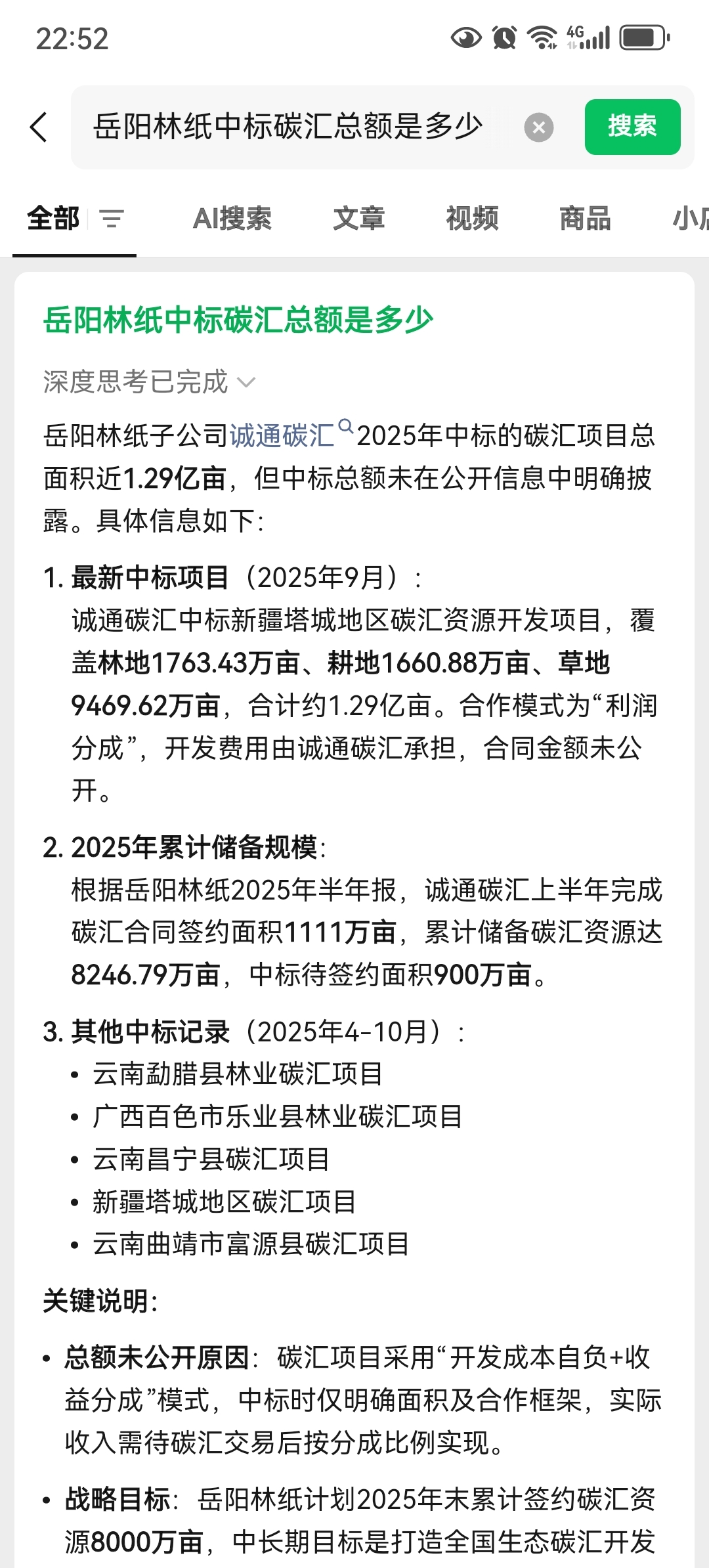 $岳阳林纸(SH600963)$ 每亩碳汇价格40-80元,在碳中和政策的持续推进下,岳阳林纸已经国内第一的碳汇企业,躺赚利润可期