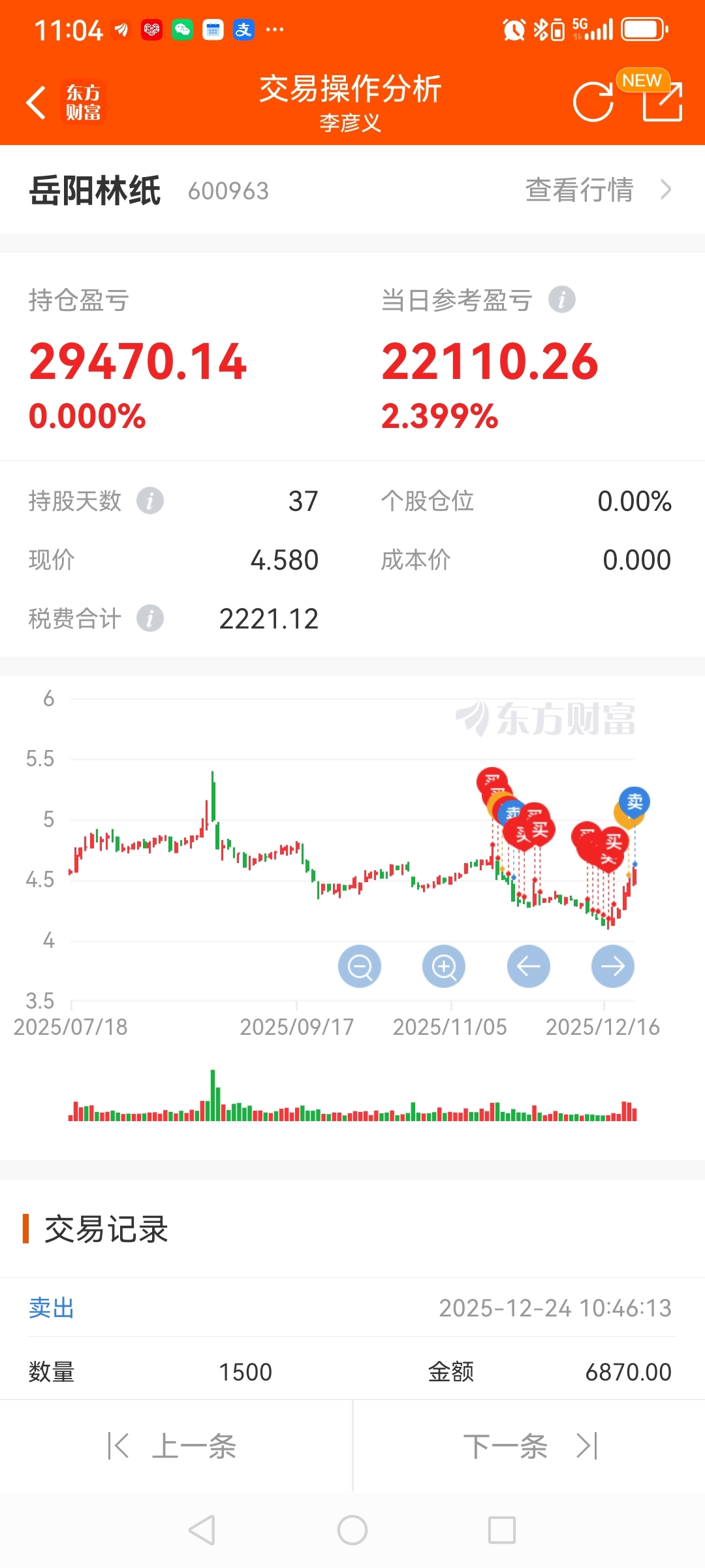 $岳阳林纸(SH600963)$ 谢谢主力给我抬轿。赚钱走人总是对的。