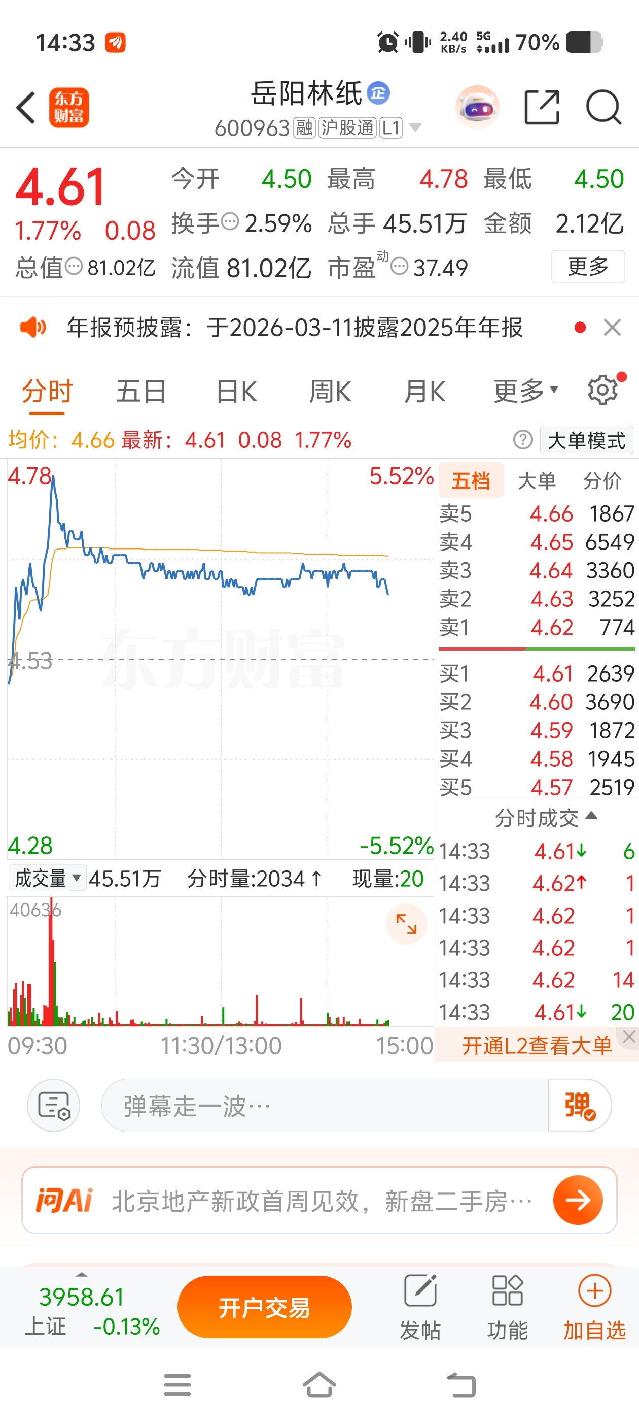 $岳阳林纸(SH600963)$ 杀猪了 我说了两点半 不信吗?哈哈哈哈哈