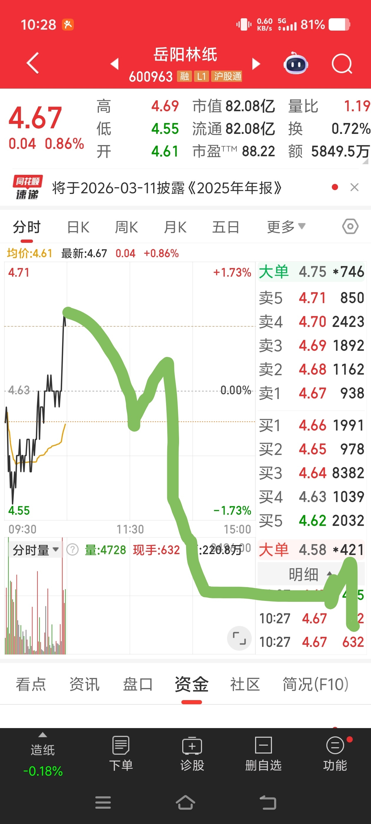$岳阳林纸(SH600963)$ 参考昨天的走势