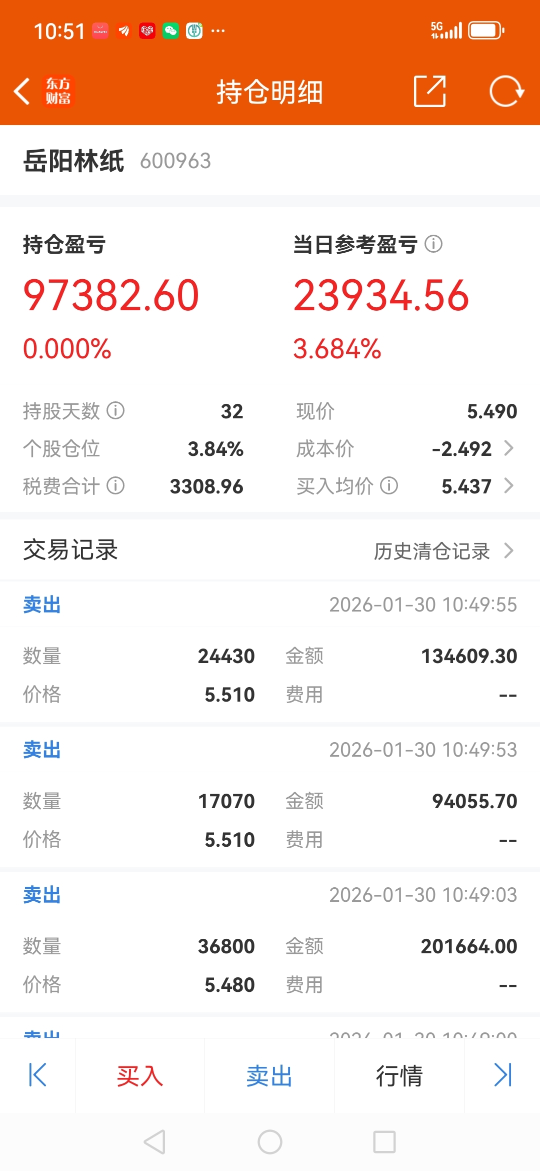 $岳阳林纸(SH600963)$ 几天赚这么多够了。