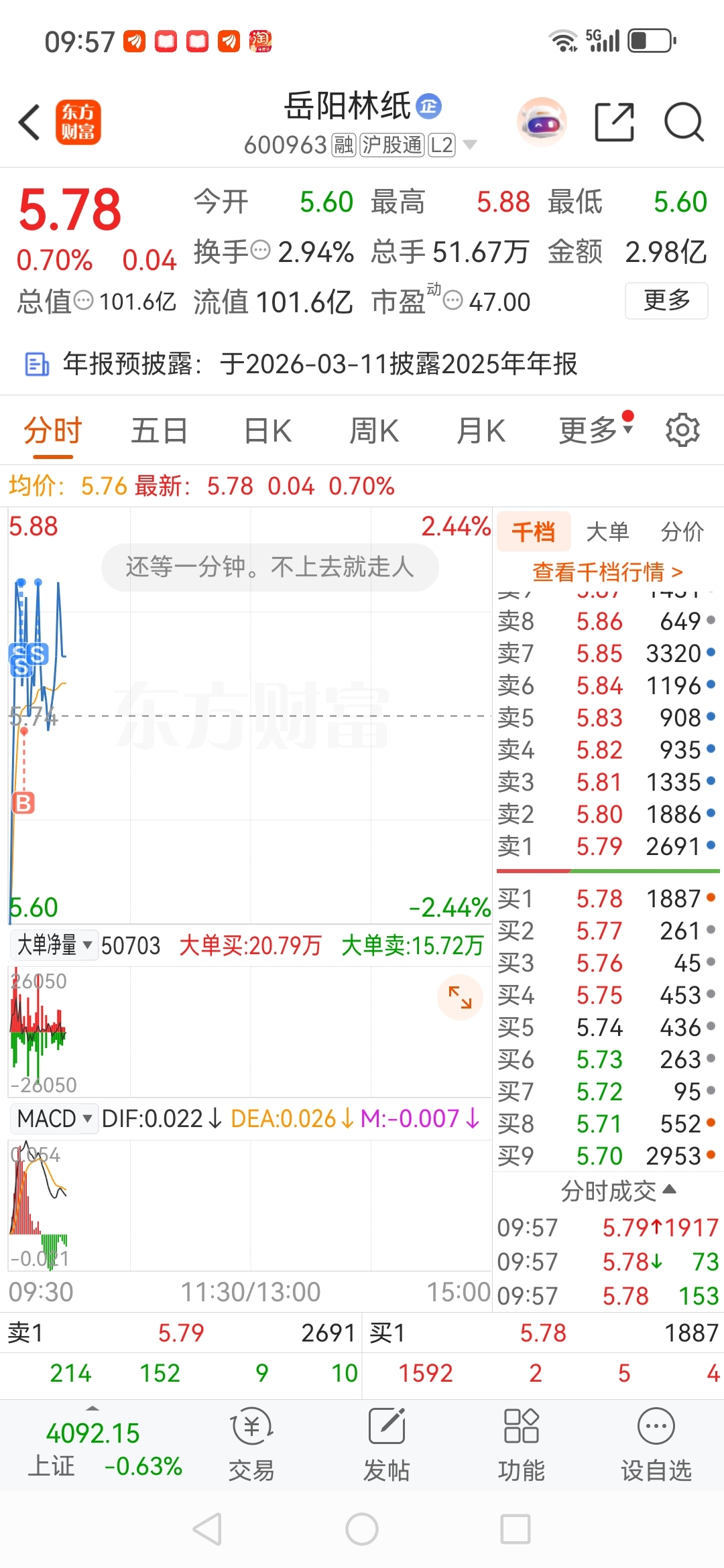 $岳阳林纸(SH600963)$ 又减仓了1/2。