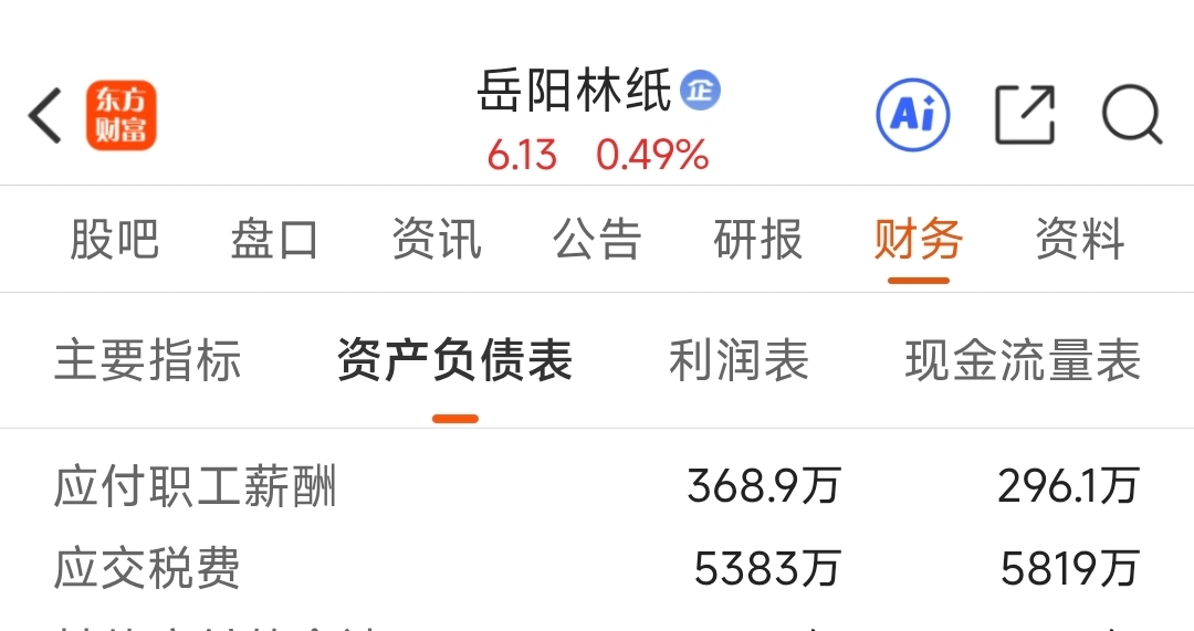 $岳阳林纸(SH600963)$ 这个季度工资只有368.9万?