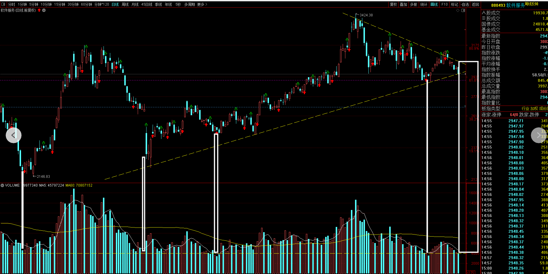 我要重点给大家讲软件服务指数相关的概念,通过软件服务指数去看软件相关的概念,个人认为大跌大买就可以,不要看到这样的一根下跌的阴线就去害怕。你要觉得下跌反而是加仓的机会,某些朋友就是看到了大阳线反而他会去加仓,下跌他反而不敢加仓,难道你们就不知道大涨之后会带来获利筹码的抛压吗?你现在即使套了几个点都无所谓,软件里面的个股比硬科技里面的个股安全系数高的多的多。软件服务指数上升通道保持完好,没有半点问题,目前这都属于正常的回调,多关注周线和月线同时共振的个股。大家仔细看看下方的图片,点开放大看,多看看之前的文章,之前的文章里面有我持仓的交割单