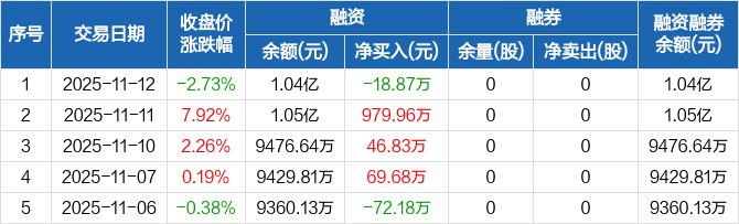 福成股份:融资净偿还18.87万元,融资余额1.04亿元(11-12)