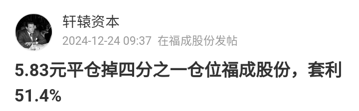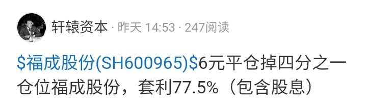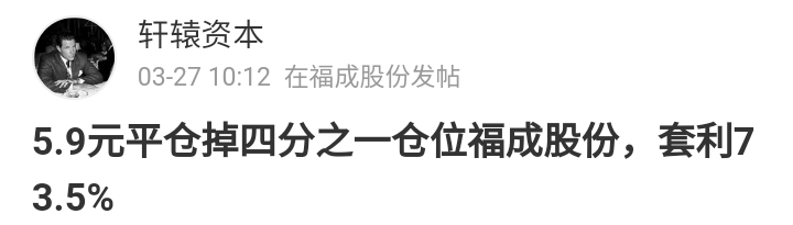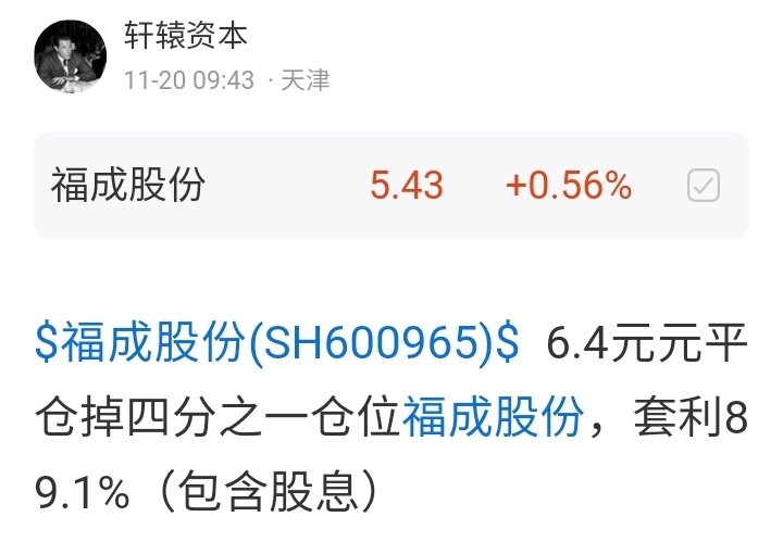 5.42元清仓掉福成股份剩余全部仓位,剩余仓位套利59%