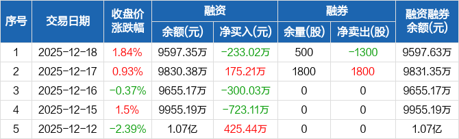 福成股份:融资净偿还233.02万元,融资余额9597.35万元(12-18)