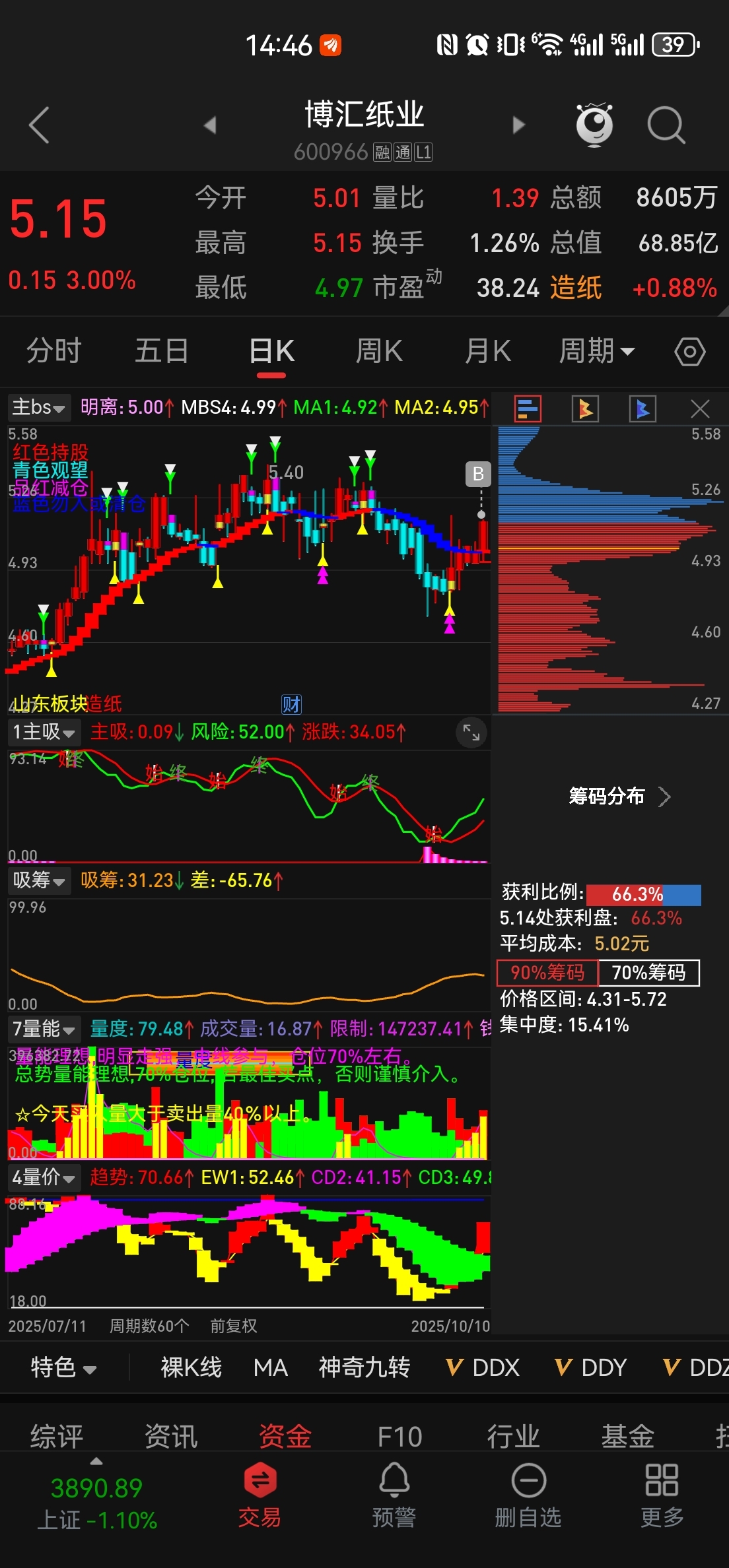 $博汇纸业(SH600966)$ 1/3仓位,买入还不错,大盘惨不忍睹,我的还有受益,“管住手,相信工具”是必须严格遵守的准则