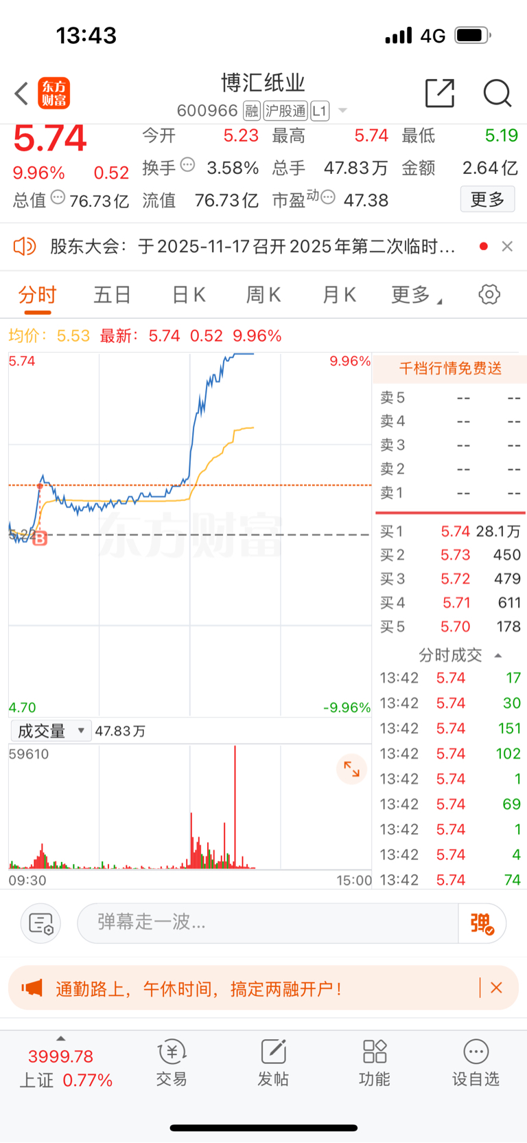 $博汇纸业(SH600966)$ 什么逻辑?一买就涨停