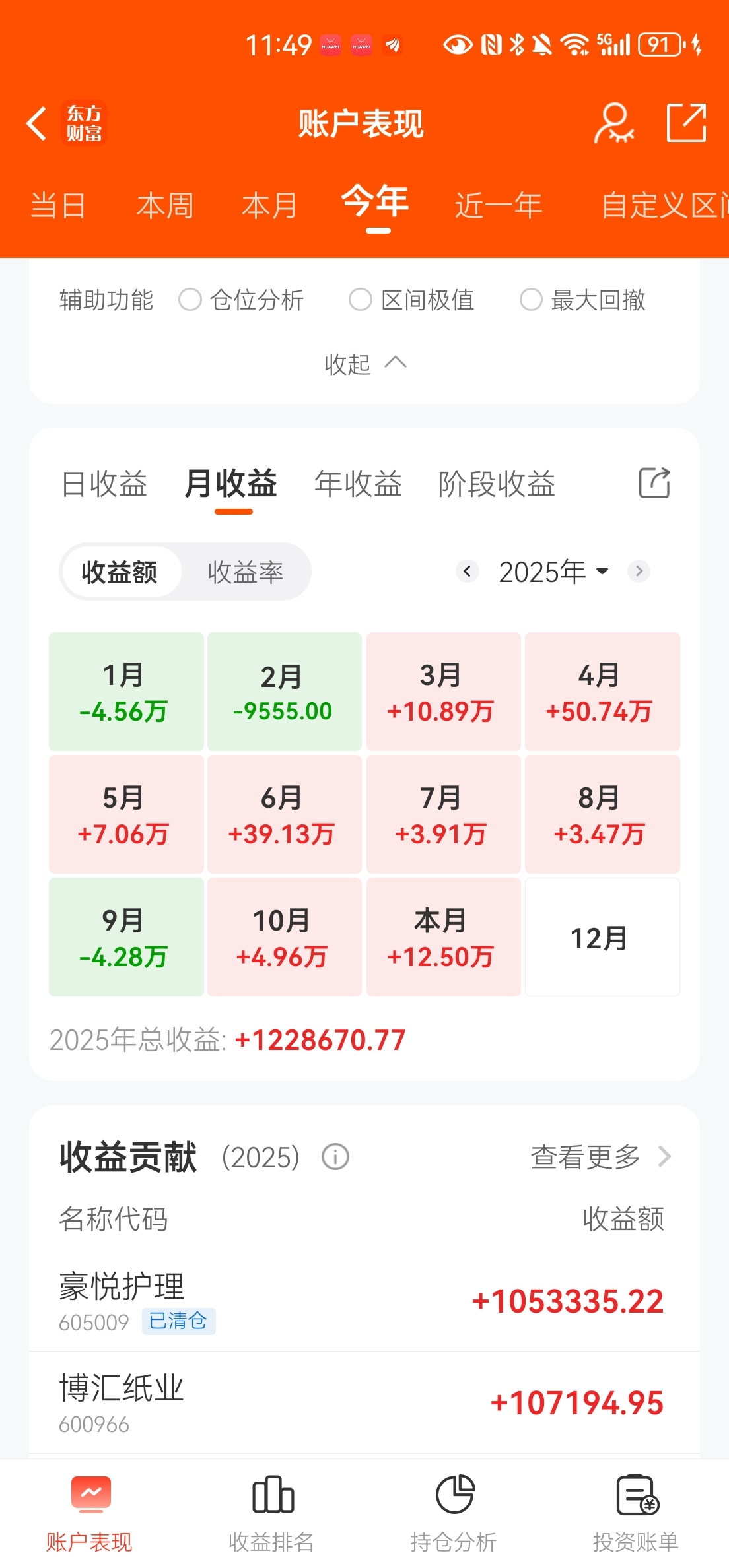 2025,收益破百,豪悦回本,博汇回本,感恩,开心。